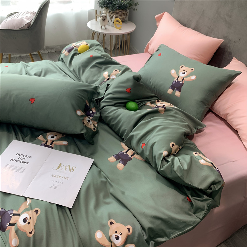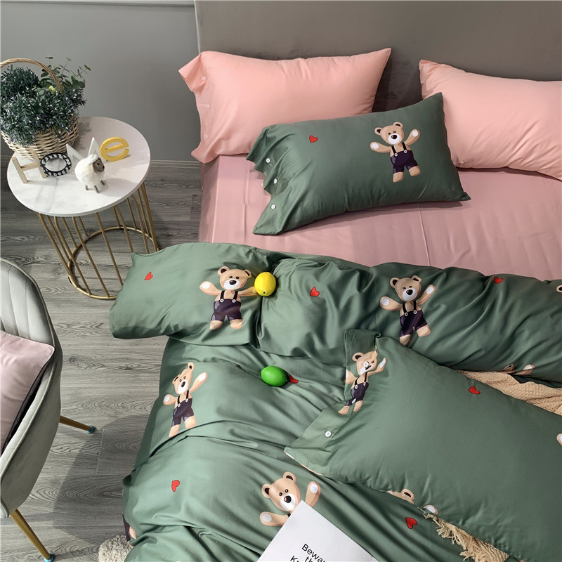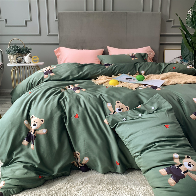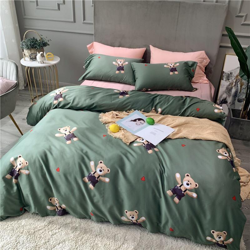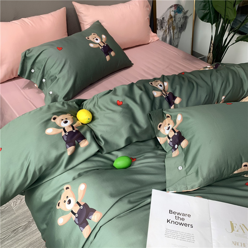 优然居 2019新款长绒棉活性印花四件套 约翰绿-熊