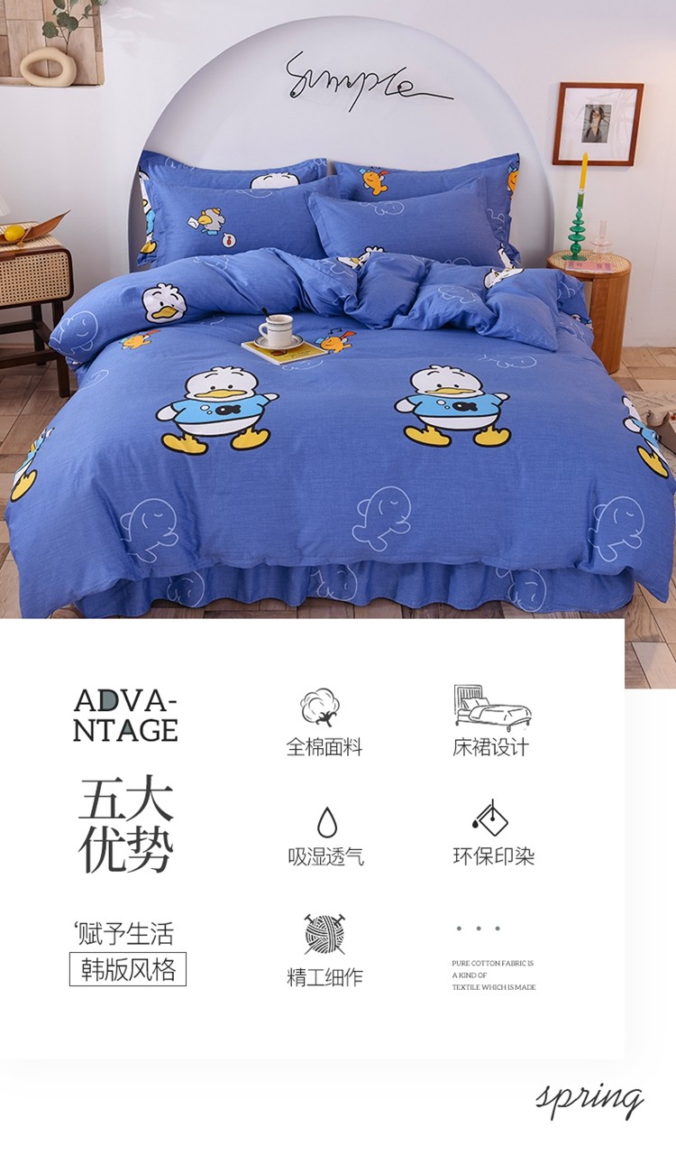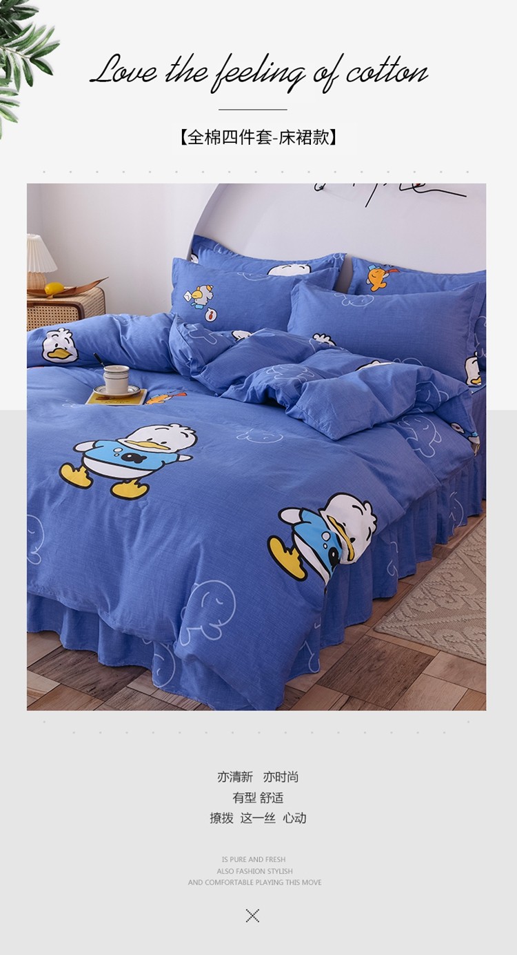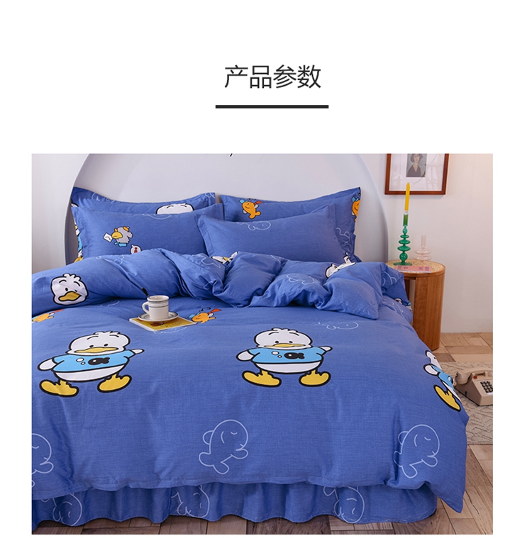 当前位置: 91家纺网 > 商品网购 > 床品套件 > 四件套 > 全棉普通四件套 > 八十八家纺 2025新款全棉12868床裙款四件套 博士鸭