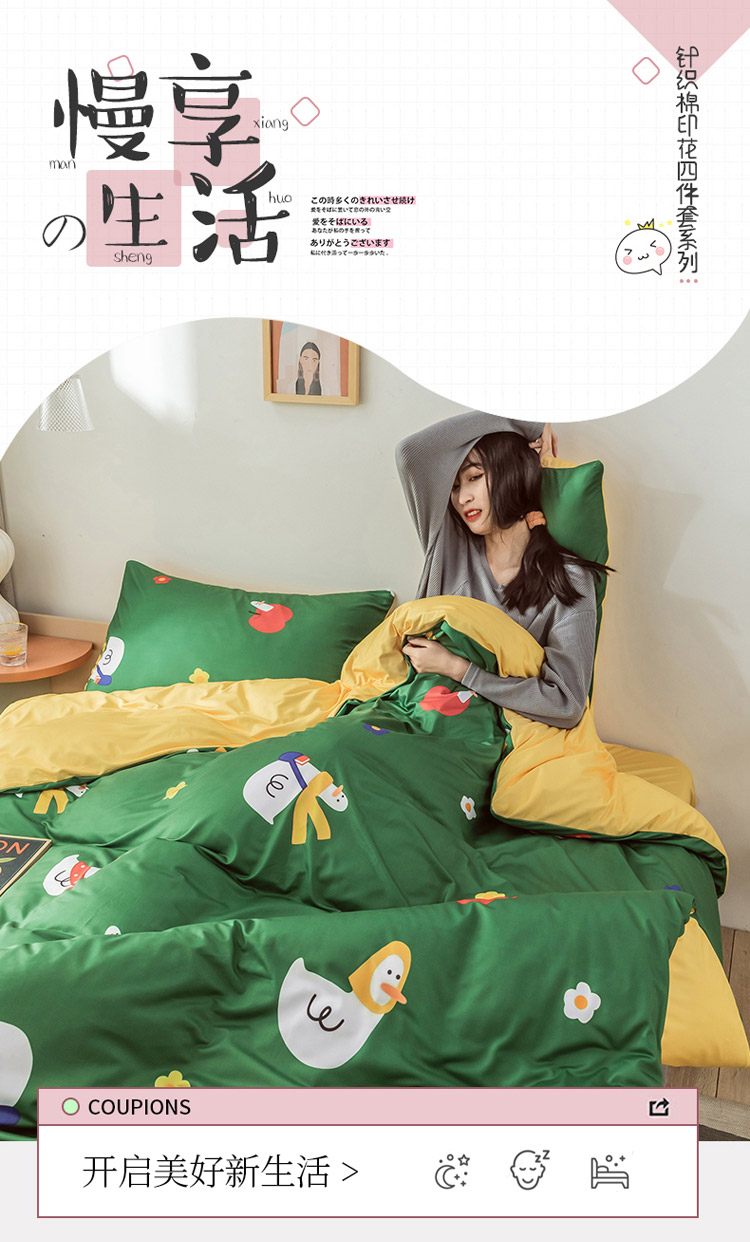 商品名称:爱缦 2020新款日系针织棉小版四件套 可爱鸭