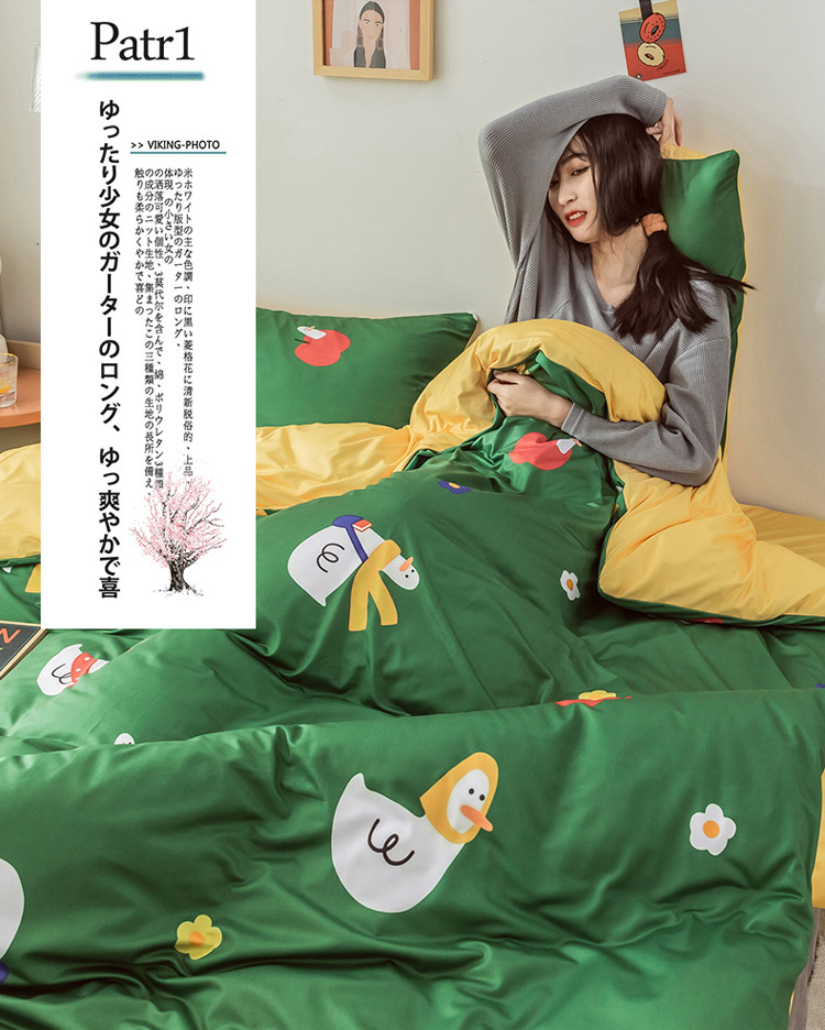 爱缦 2020新款日系针织棉小版四件套 可爱鸭