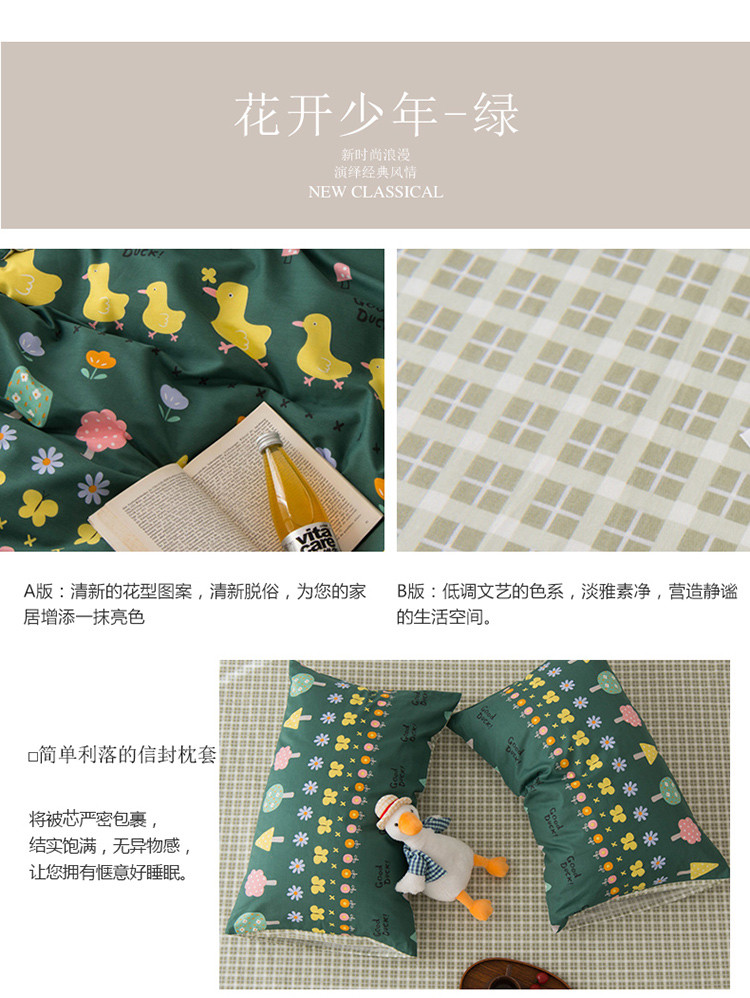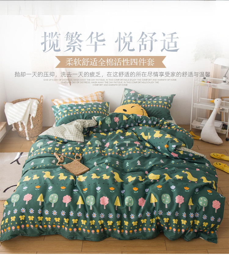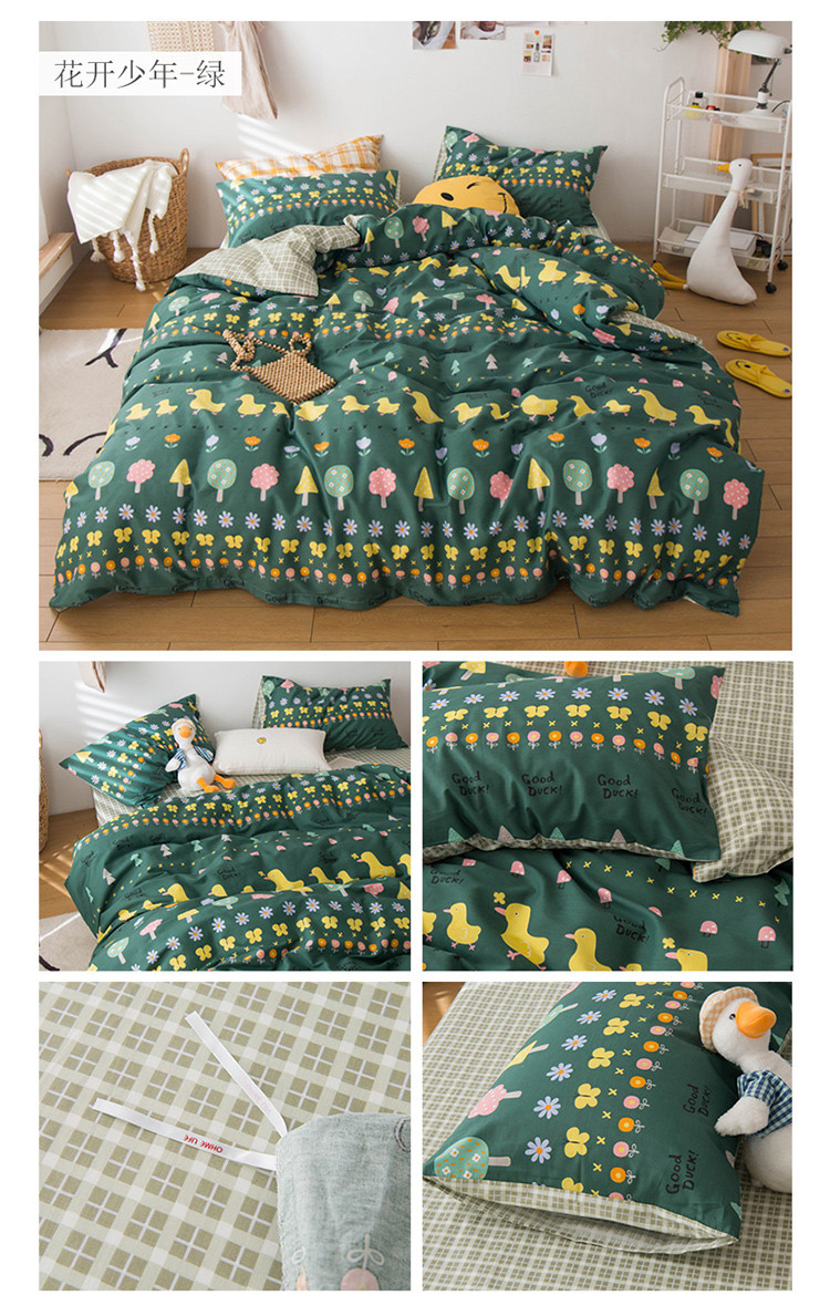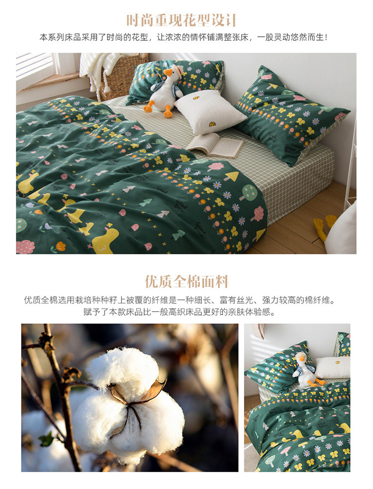 商品名称:窝米 2020春夏新品13370全棉四件套萌宠风系列 花开少年-绿