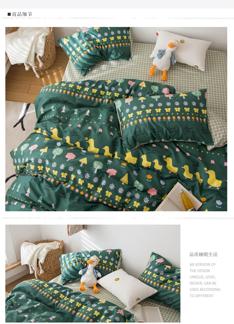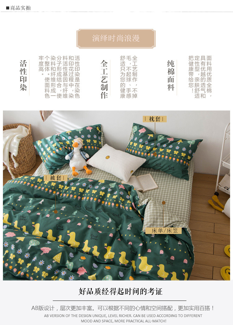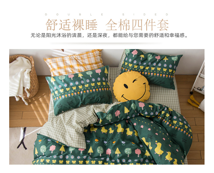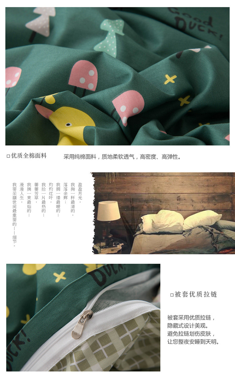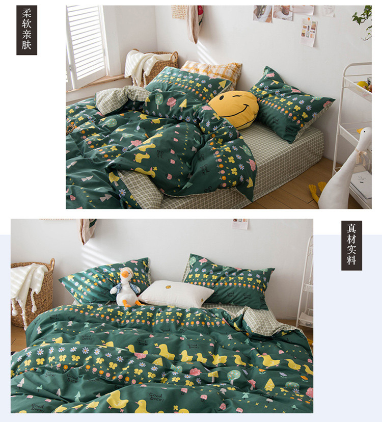 商品名称:窝米 2020春夏新品13370全棉四件套萌宠风系列 花开少年-绿