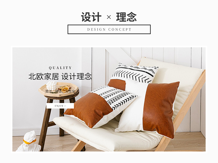 (总)美茉家居跨境电商爆款皮革帆布拼接抱枕黑白印花可拆洗靠垫,更甚,留白,有物,长物