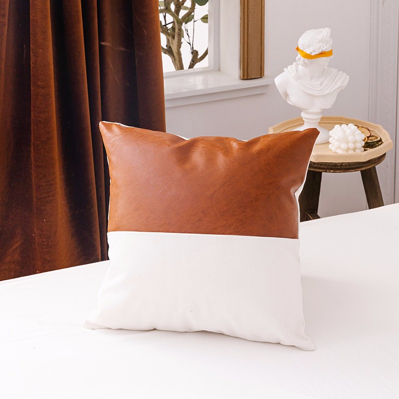 商品名称:美茉家居跨境电商爆款皮革帆布拼接抱枕黑白印花可拆洗靠垫 留白