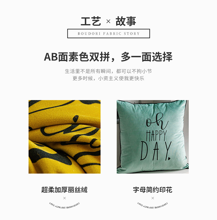 当前位置: 91家纺网 > 商品网购 > 居家日用 > 靠垫/抱枕 > 美茉家居绒布双面拼色抱枕英文字母印花滚绳靠垫 sweet home