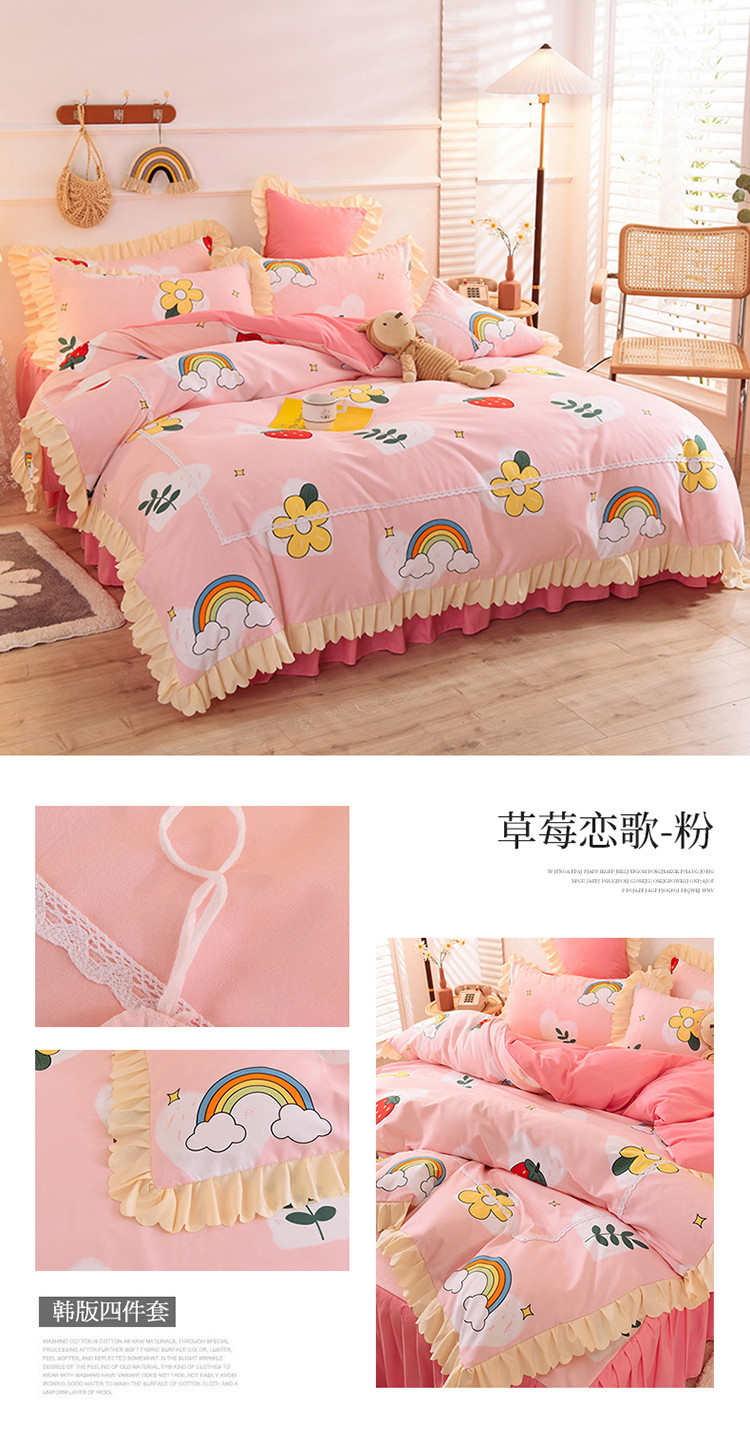 (总)梦之岛 2023新款棉麻水洗双层纱床裙四件套,草莓恋,初春,大展宏兔,芳菲,花语,玫瑰小兔,慕青,唯美,幸运熊,郁金香
