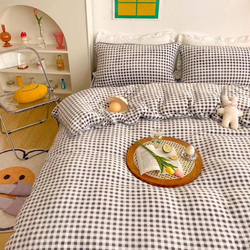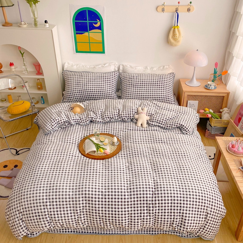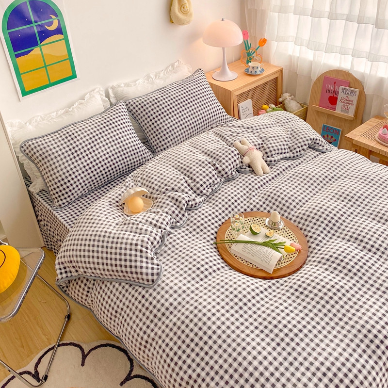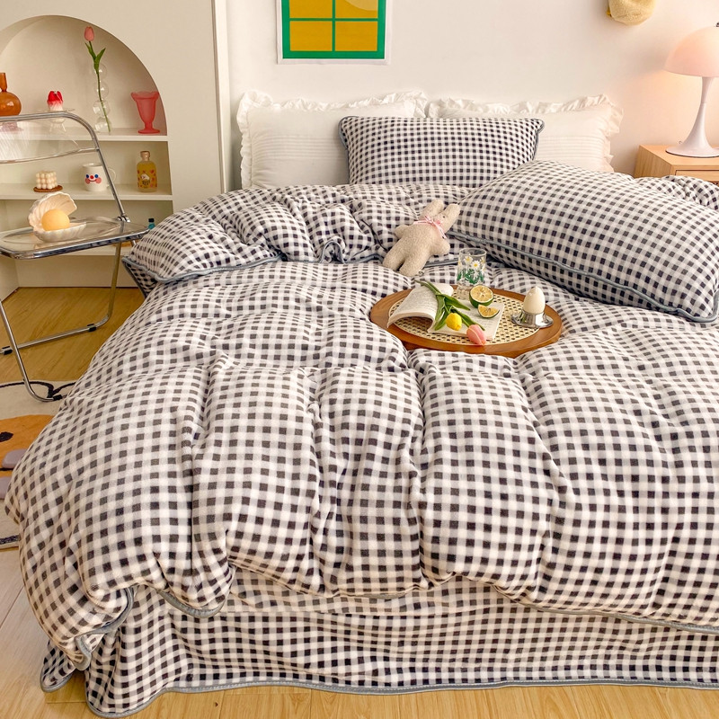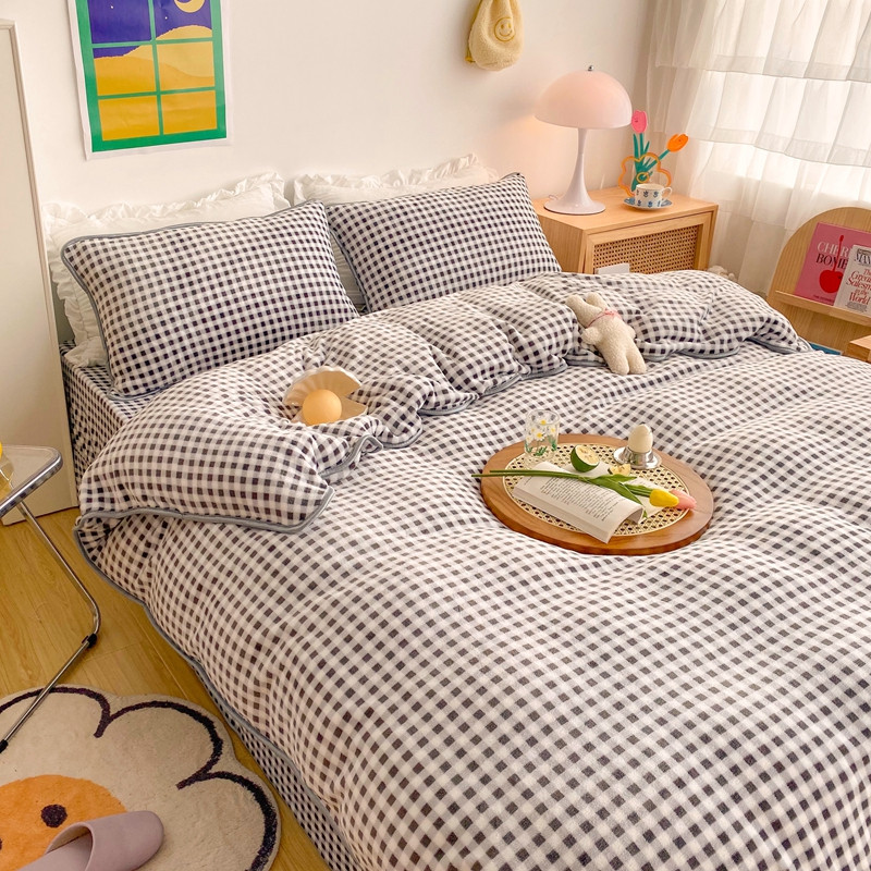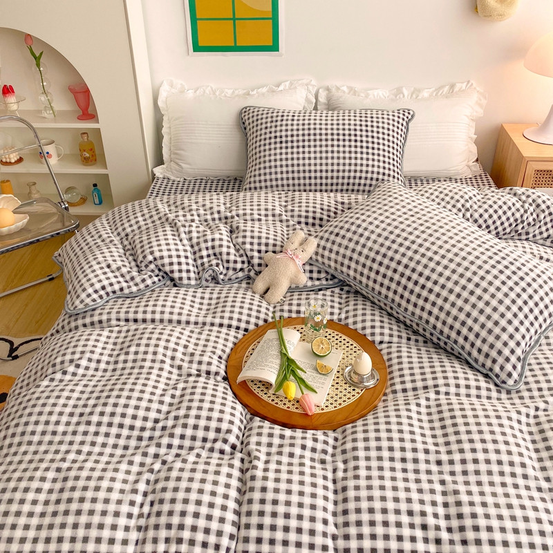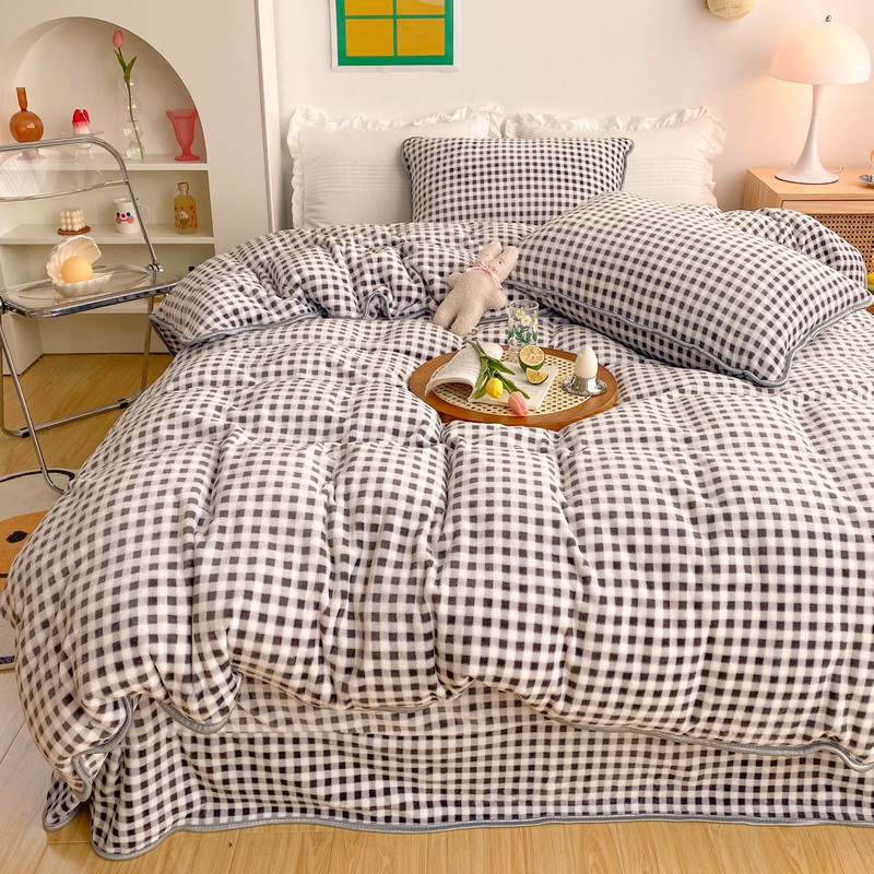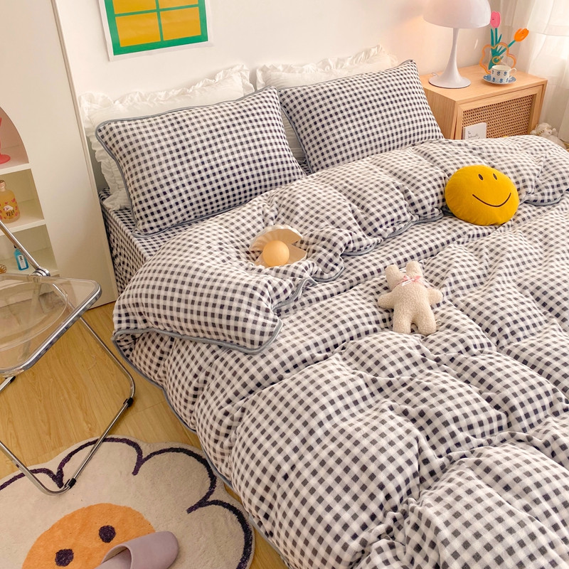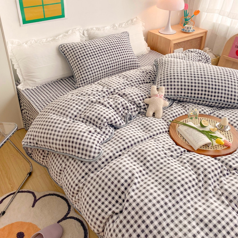 (总)顾里家纺 2024新款ins奶萌格子狗狗毛巾绣牛奶绒四件套,粉格小狗,黄格小狗,咖格小狗,蓝格小狗,绿格小狗