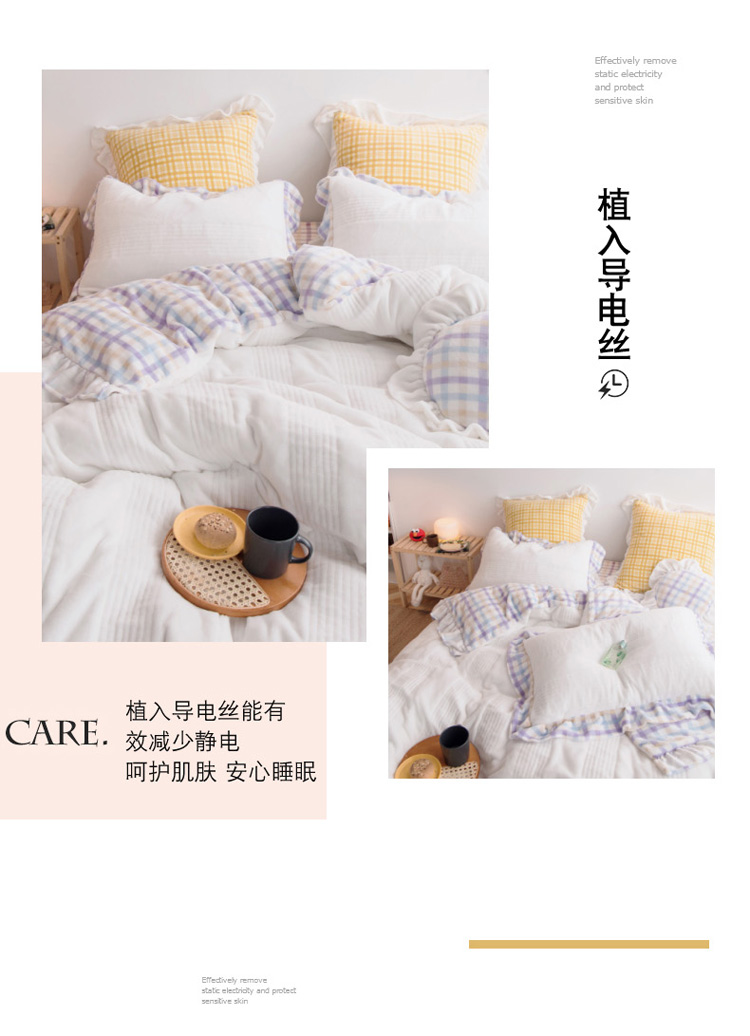 (总)漫调家纺 2025新款全棉双层纱与绒床盖三件套,黛紫缀花,粉雾枝蔓,玫瑰故事,青芜点绯,轻烟凝灰