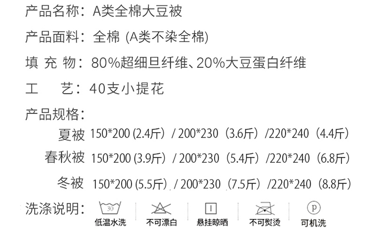 200X230cm5.4斤春秋被 | ¥133.00 |