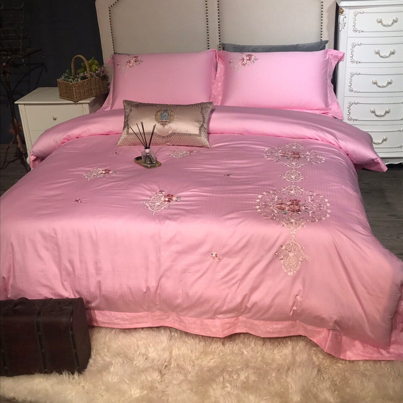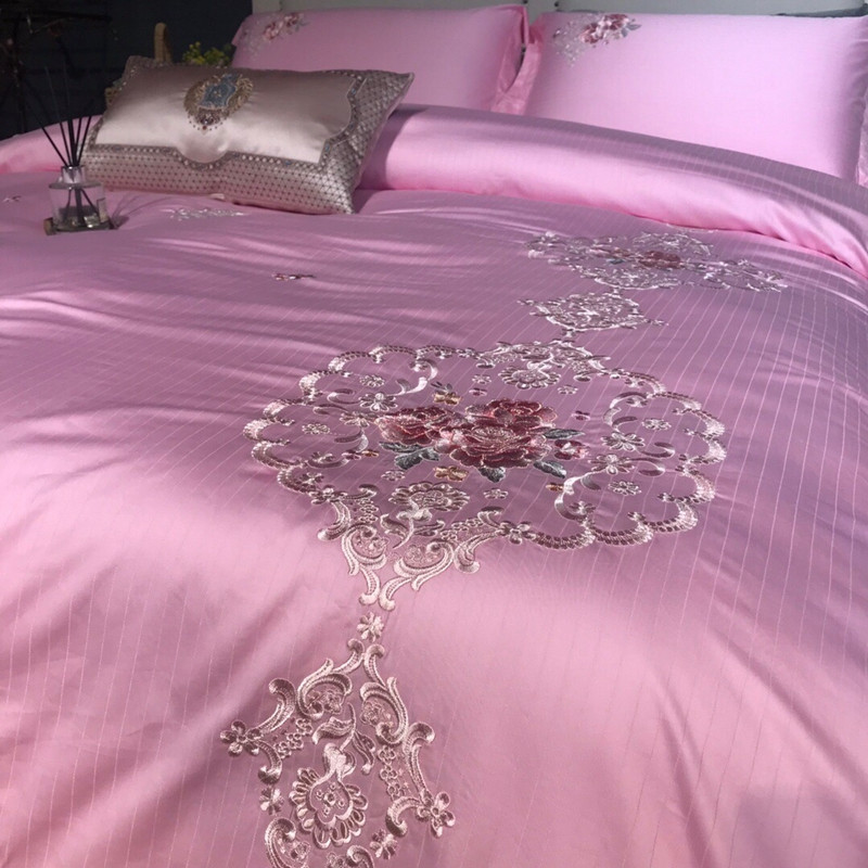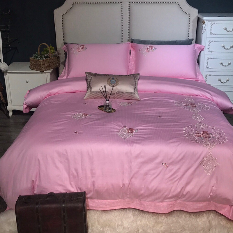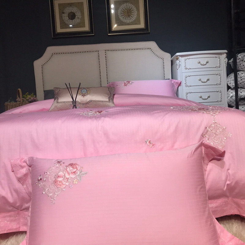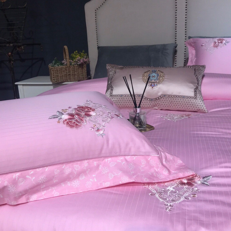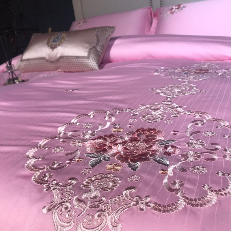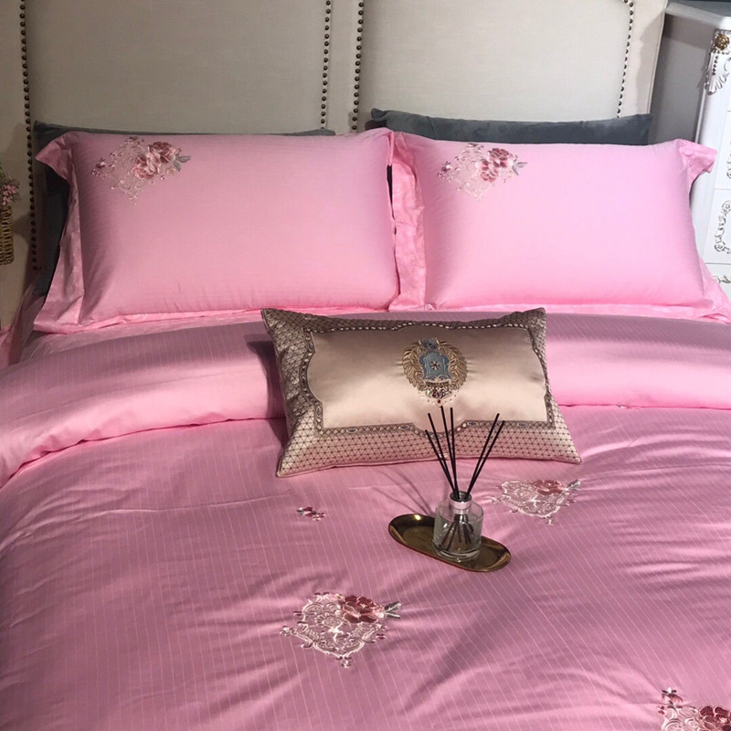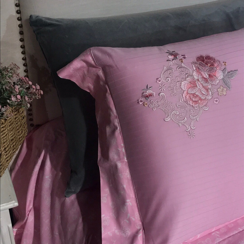 玖玖爱 2020新款100支提加印绣花系四件套 密西西里粉色
