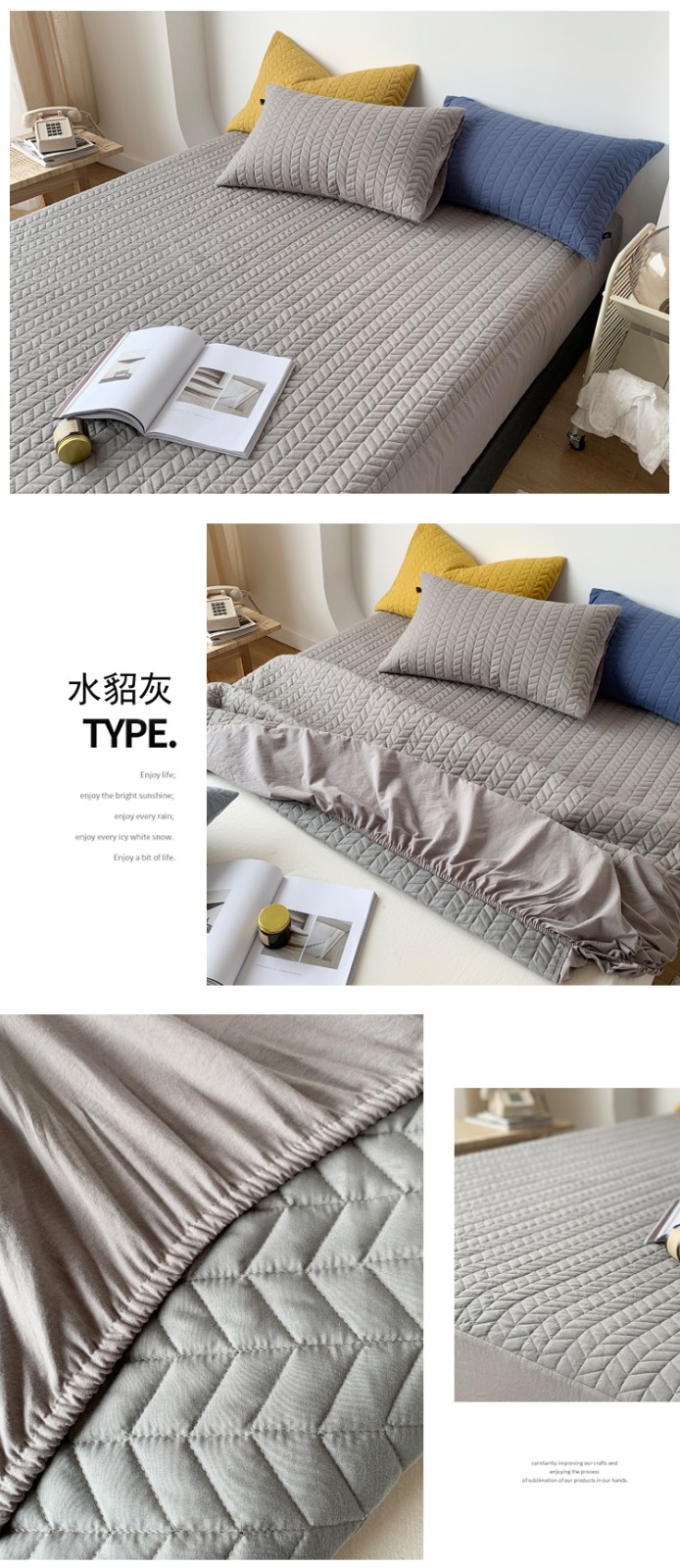 纯棉水洗棉加厚床笠三件套榻榻米双面两用夹棉枕套秋冬床垫保护套