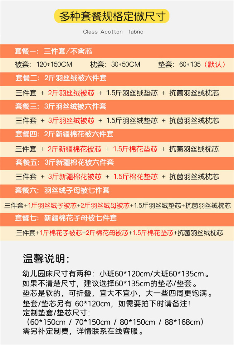 商品名称:美真家纺纯棉活性40支A类幼儿园三件套多件套全棉床品牛宝宝