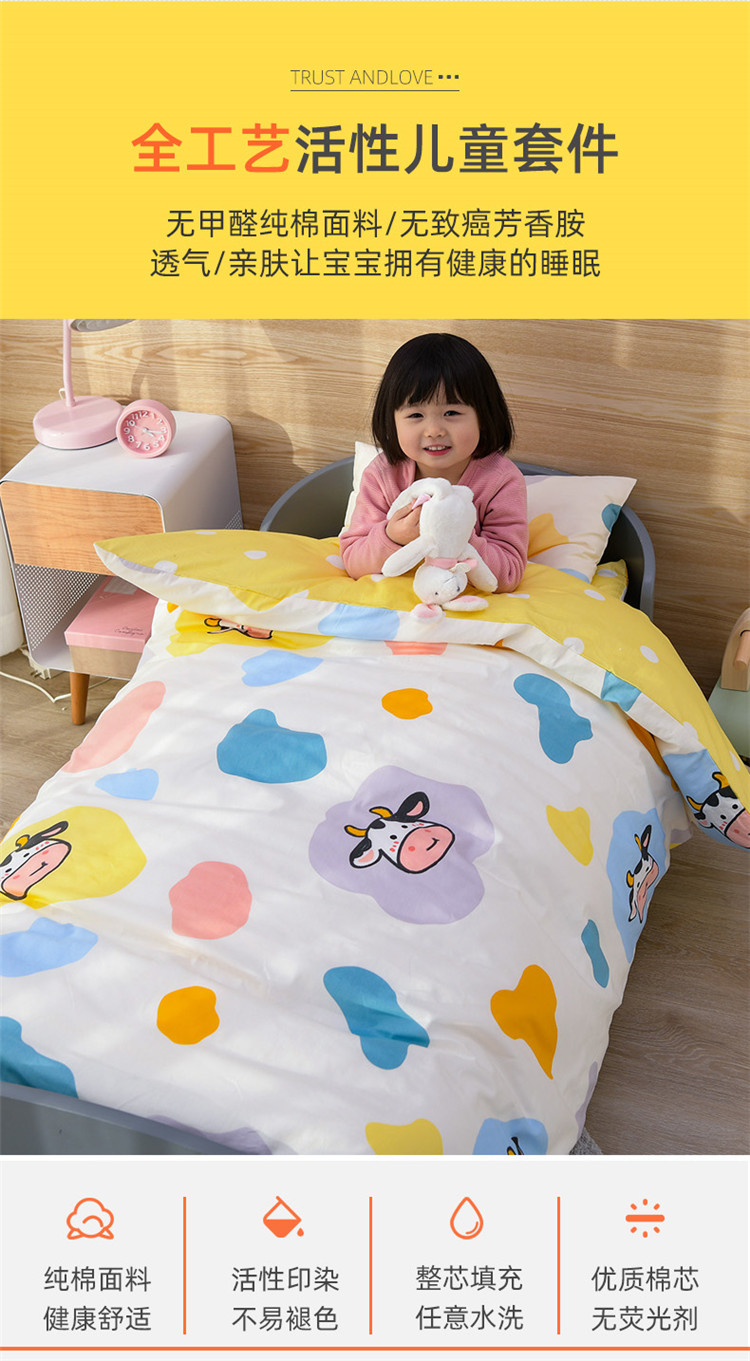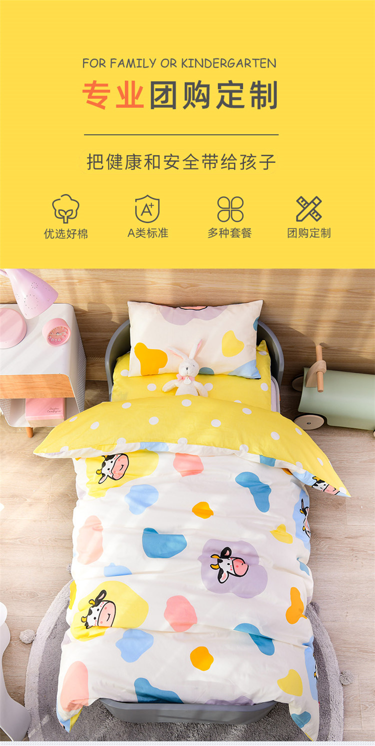 美真家纺纯棉活性40支A类幼儿园三件套多件套全棉床品牛宝宝