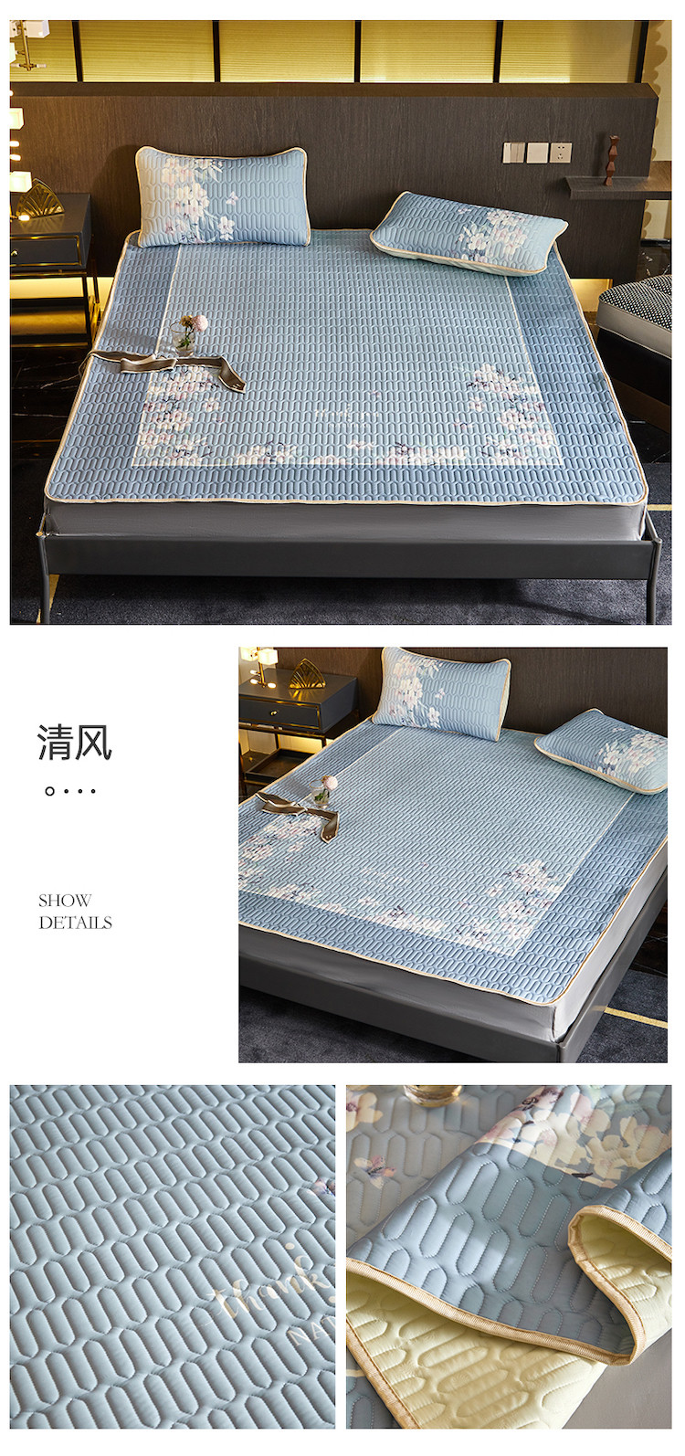 商品名称:凡客 2022春夏新款大版数码印花凉感丝乳胶凉席三件套 清风