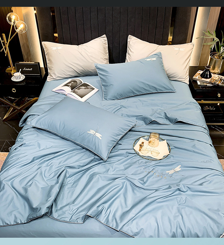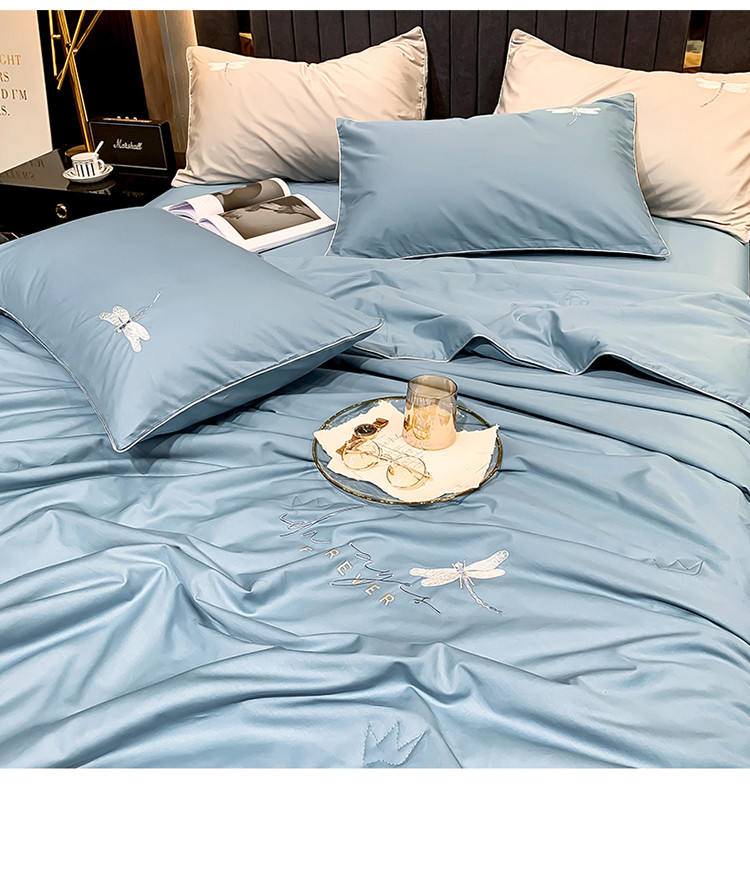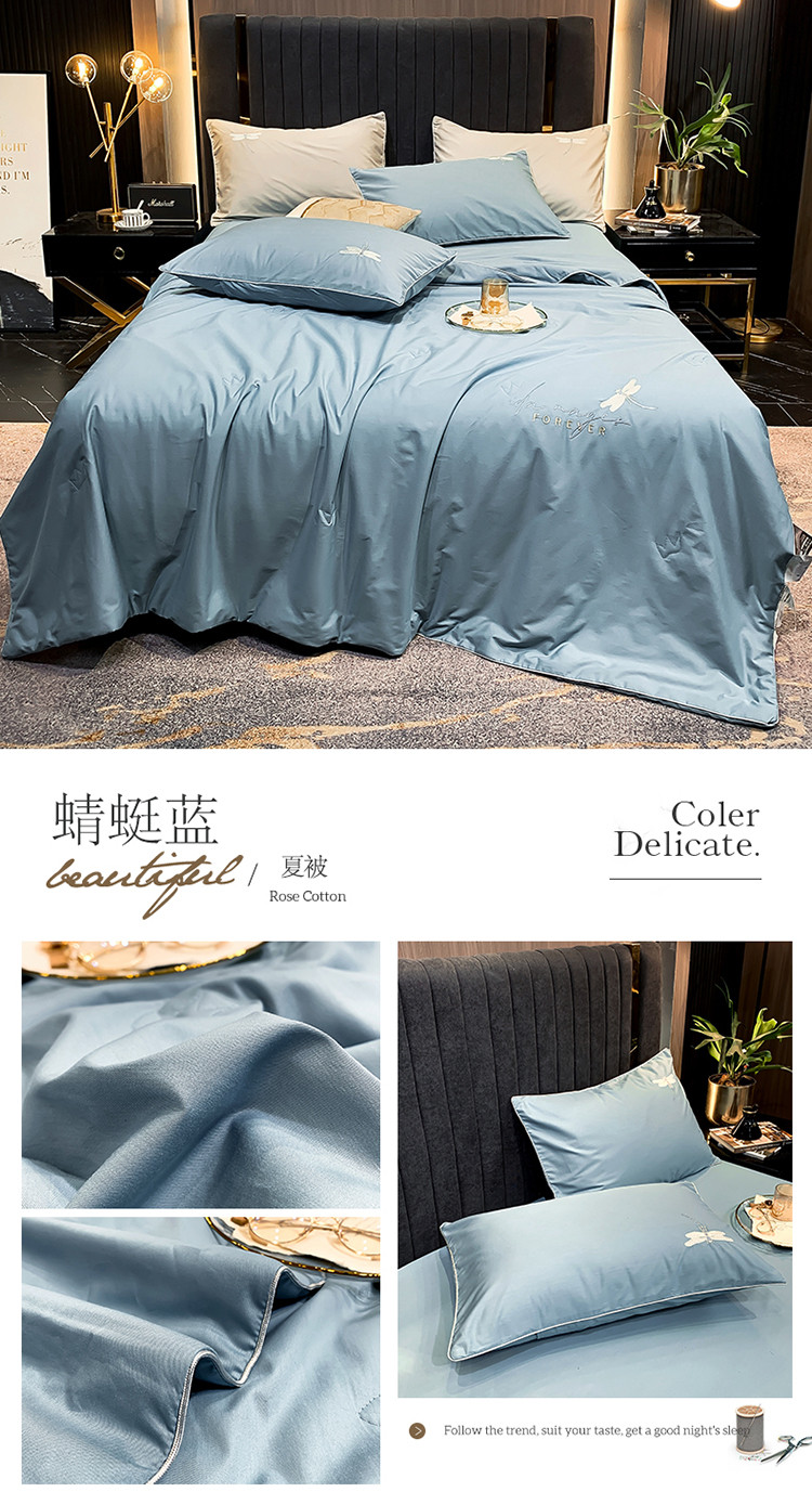 • 91家纺网 家纺一手货源 找家纺 头等舱2022全棉A类大豆抗菌防螨夏被四件套蜻蜓 蜻蜓蓝-实拍图