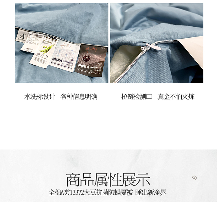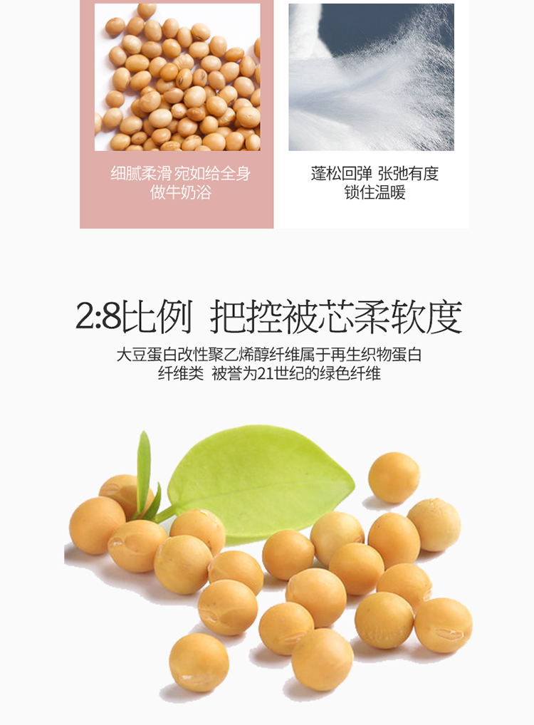 • 填充纤维种类: 大豆蛋白改性聚酯纤维