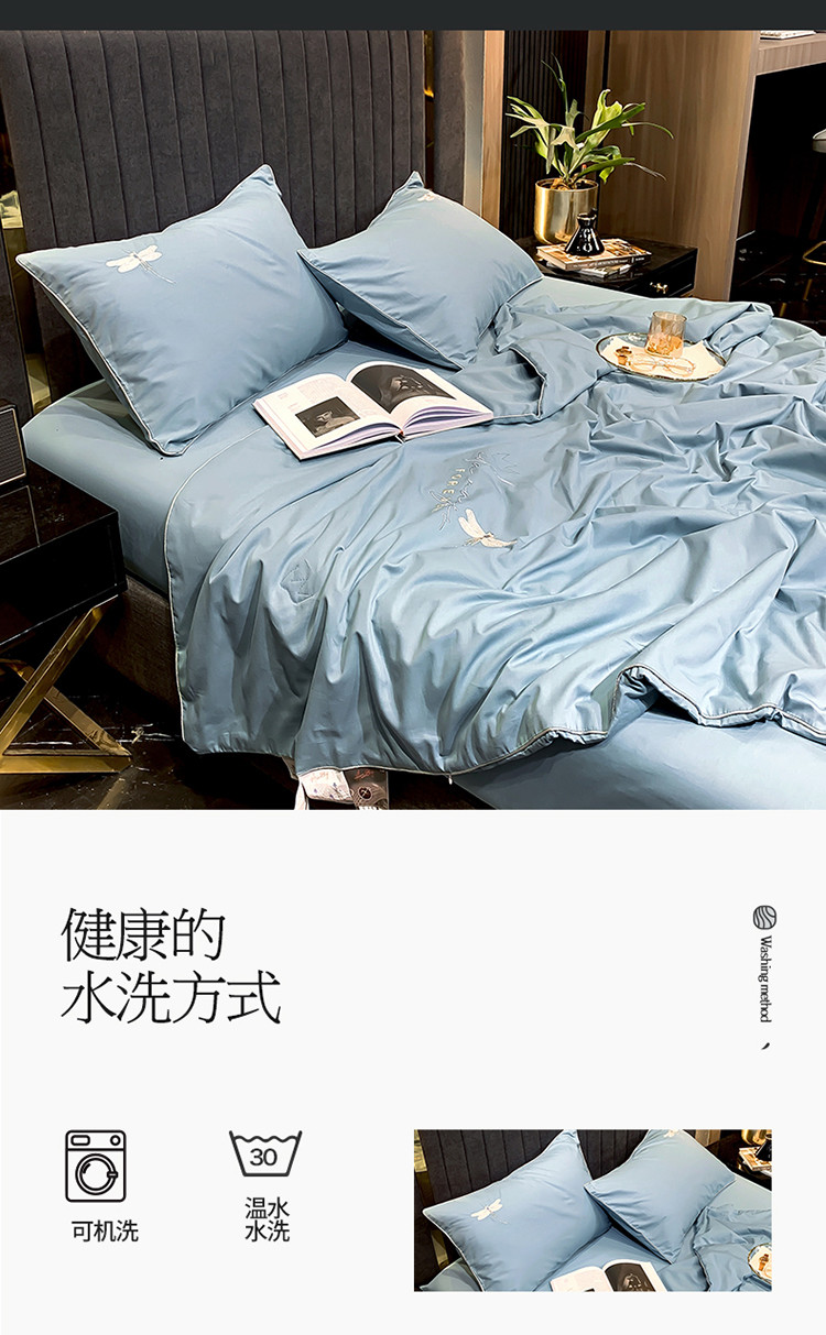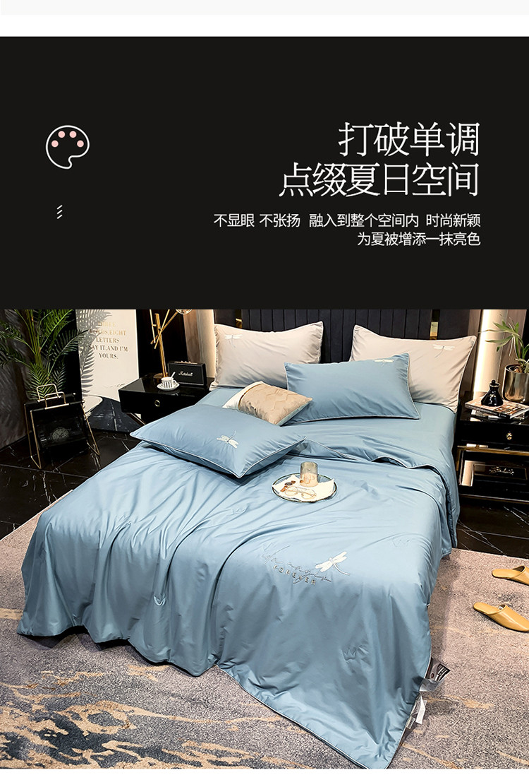 头等舱2022全棉A类大豆抗菌防螨夏被四件套蜻蜓 蜻蜓蓝-实拍图