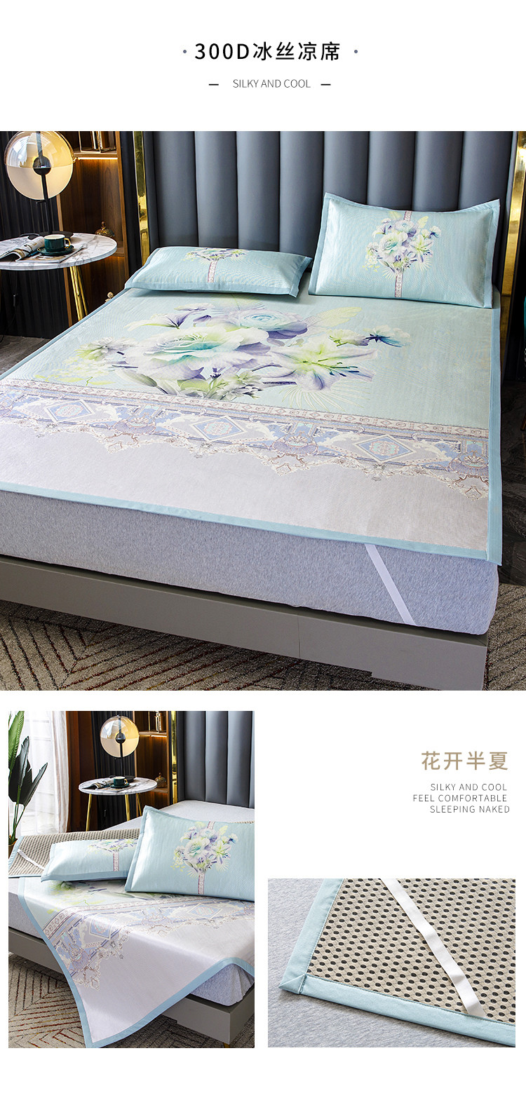 商品名称:小芽家居 2024新款冰丝斜纹提花凉席三件套 花开半夏
