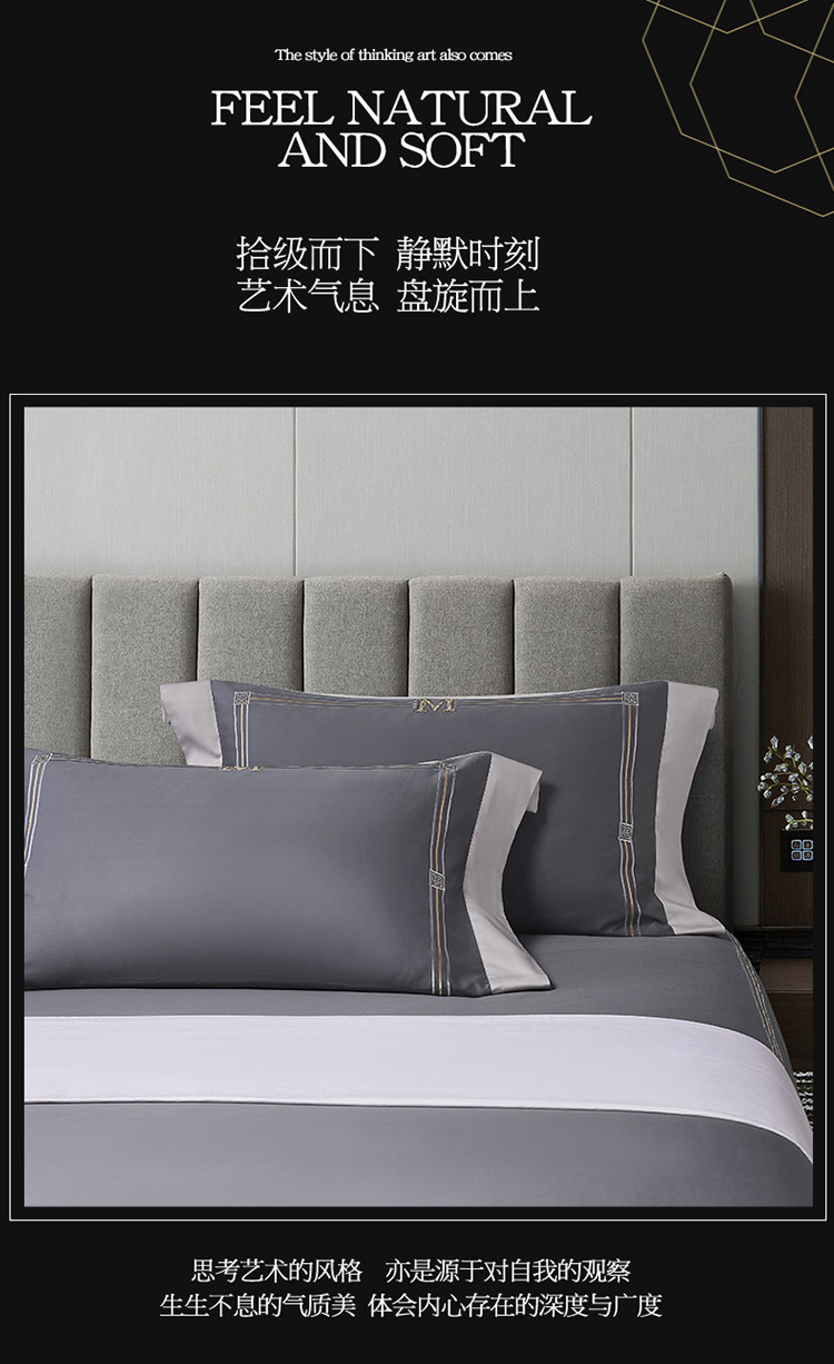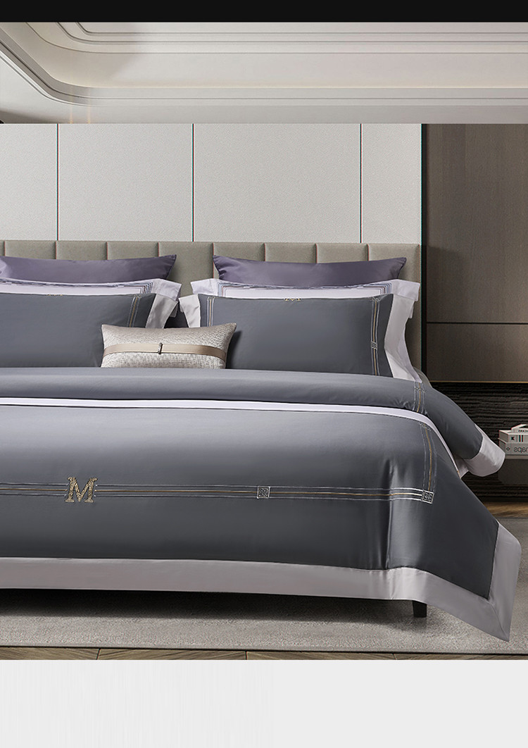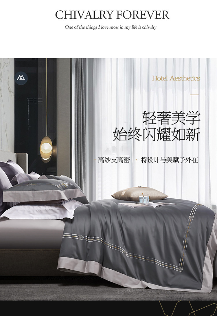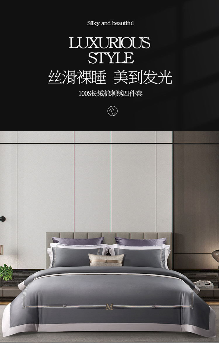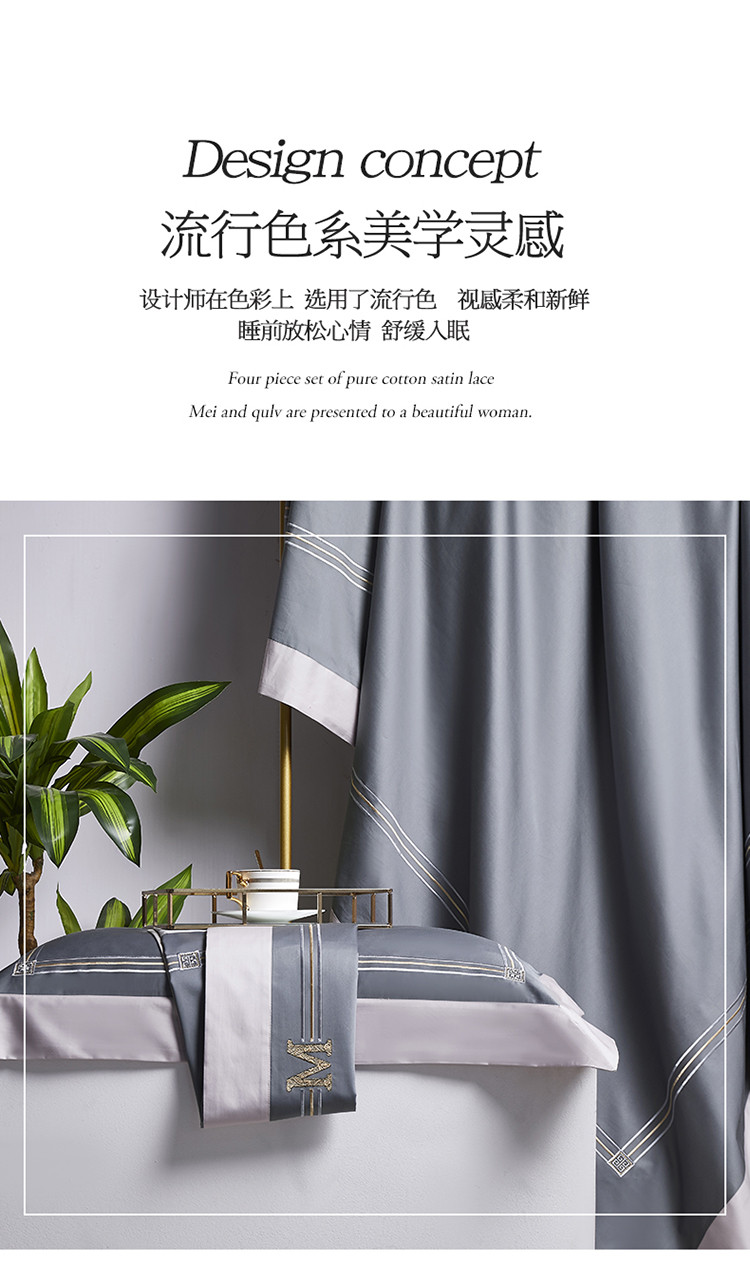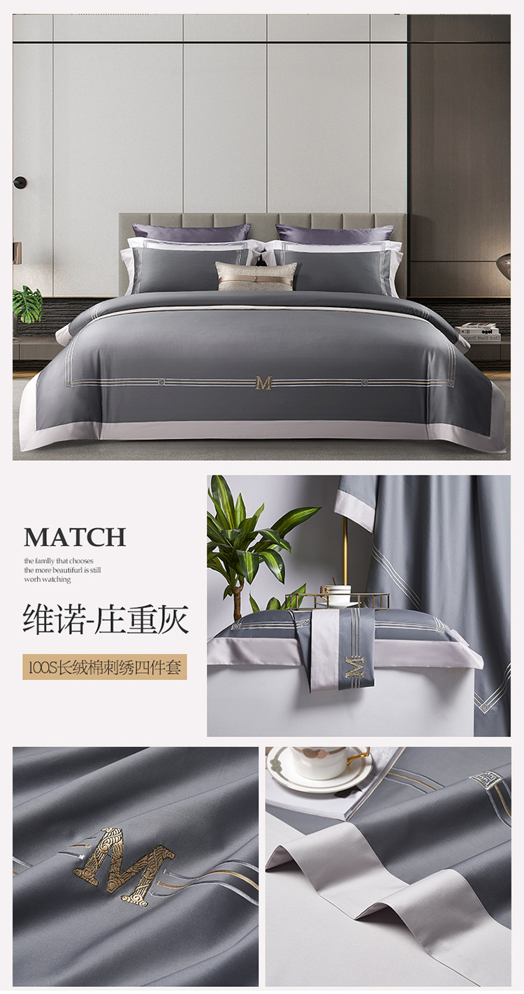 鼎飞家纺 2021新款长绒棉绣花四件套 维诺-庄重灰