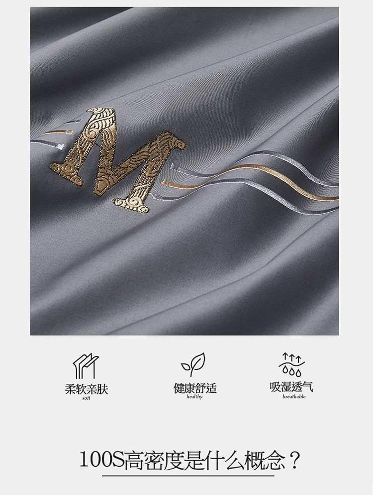 商品名称:鼎飞家纺 2021新款长绒棉绣花四件套 维诺-庄重灰