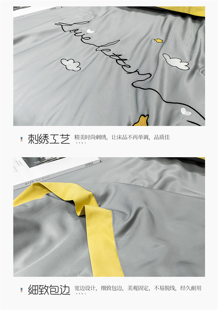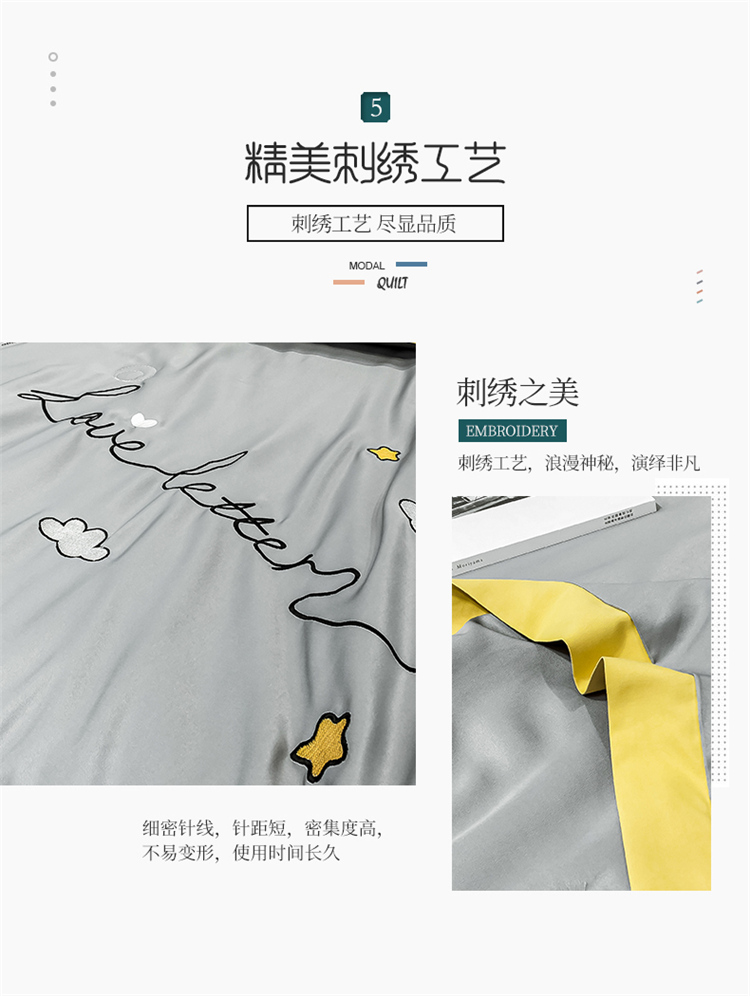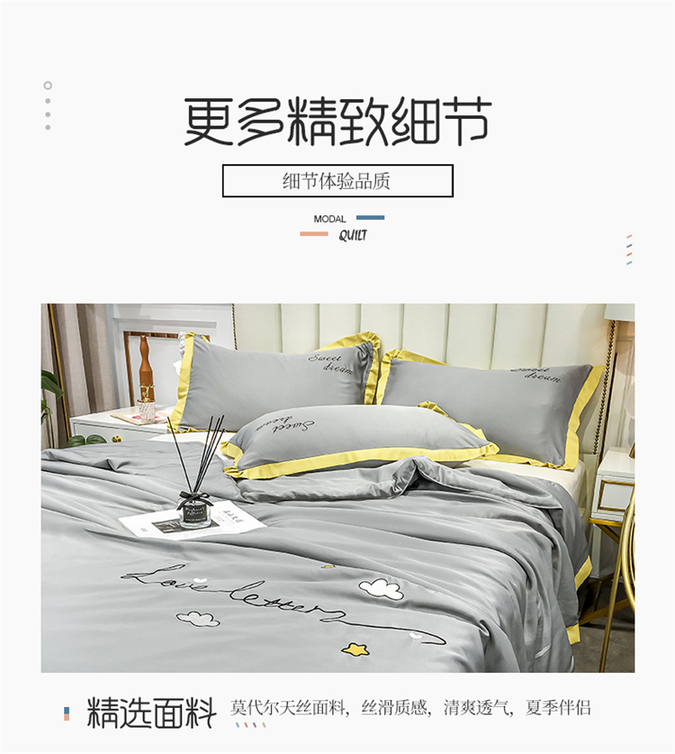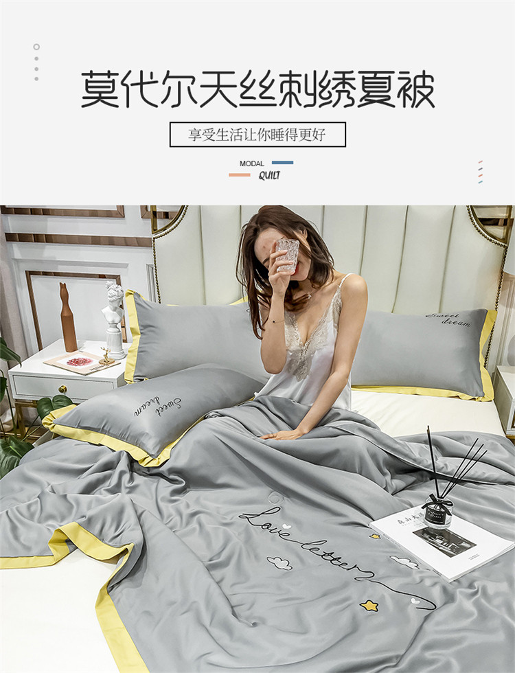 商品名称:寐居家纺 2021新款轻奢天丝刺绣夏被 亚麻灰-白云
