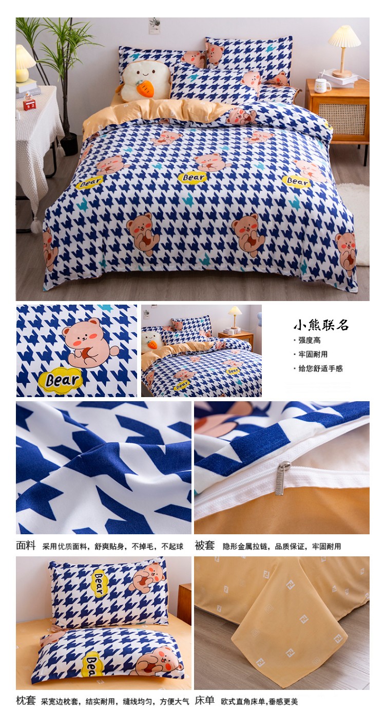 (总)乐居坊 2024新款亲肤棉美棉芦荟棉四件套学生宿舍床(5月),霸王茶姬,有爱,调皮小新,嘟嘟恐龙,怪盗KID,萌萌牛,梦格,梦想猫,奶油熊,偶像派,趣味小熊,荣耀,荣耀之星,天之蕉子,嘻哈