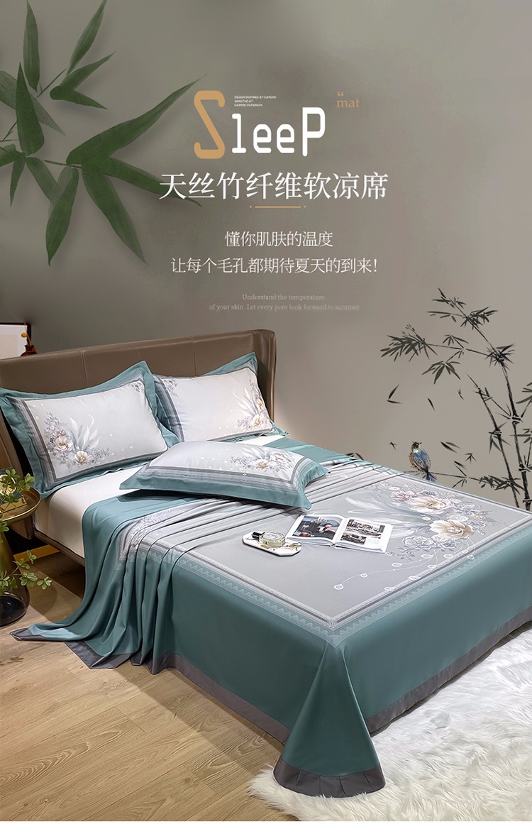 (总)眠帛家居 2021数码竹语天丝凉席冰丝席空调席三件套