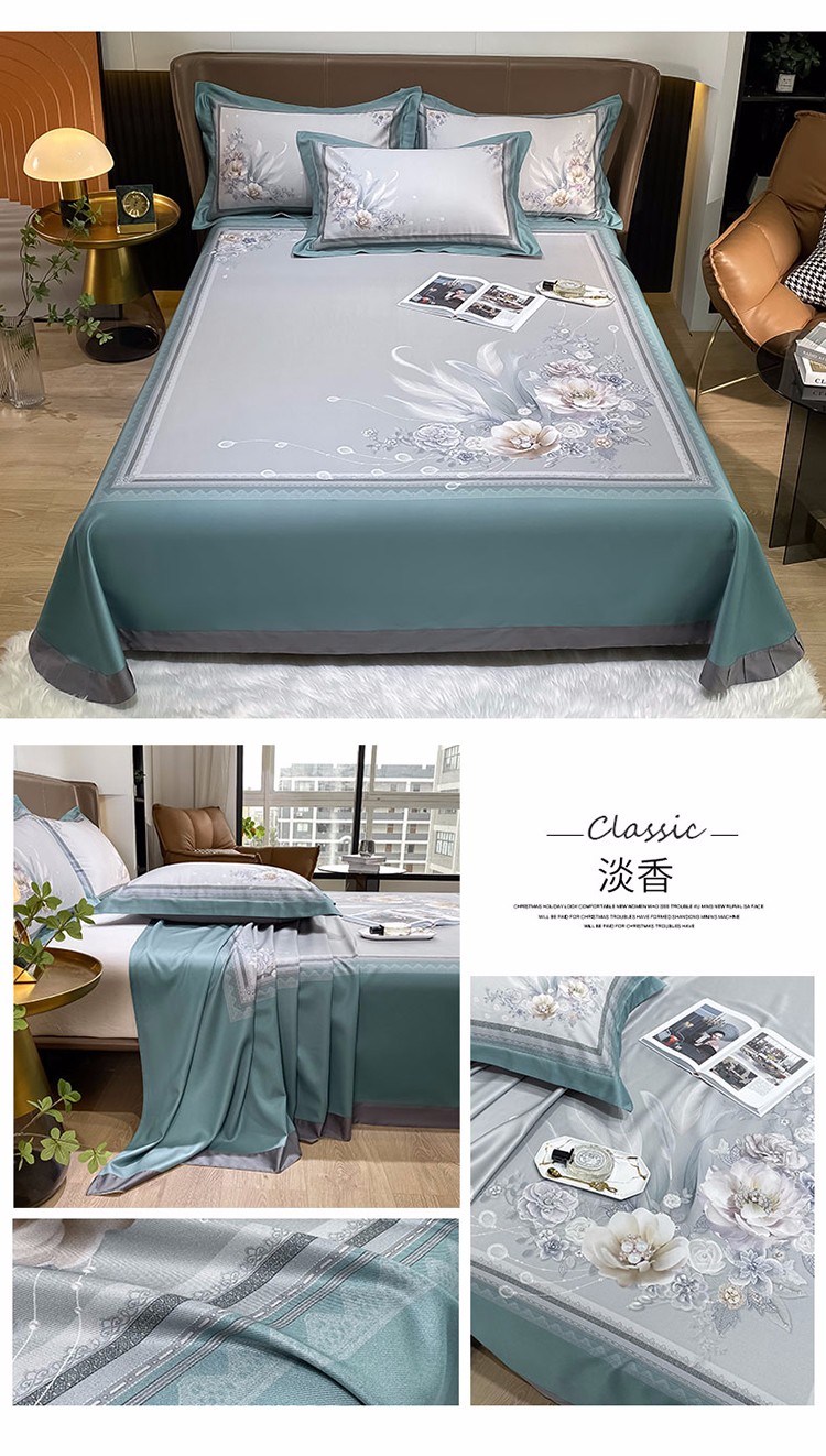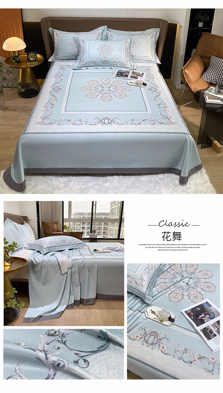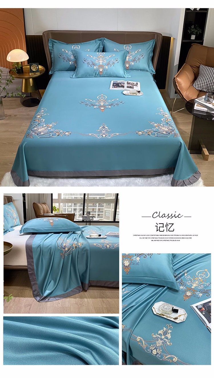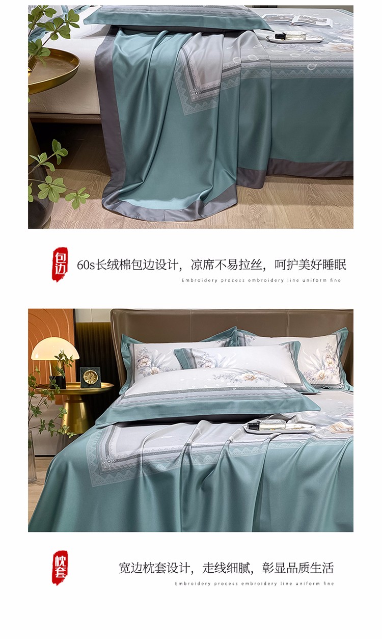 总眠帛家居2022新品60支兰精天丝气质轻奢绣花四件套-盛夏,盛夏-粉,盛夏-蓝,盛夏-绿