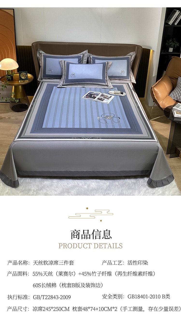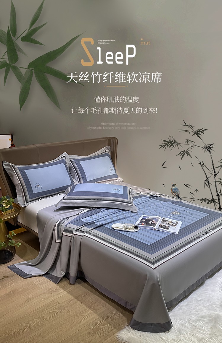 眠帛家居 2021新款数码竹语天丝凉席三件套 雅致