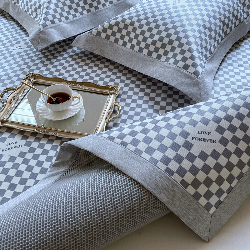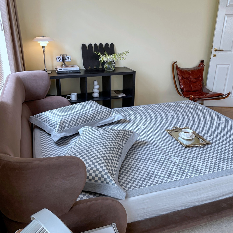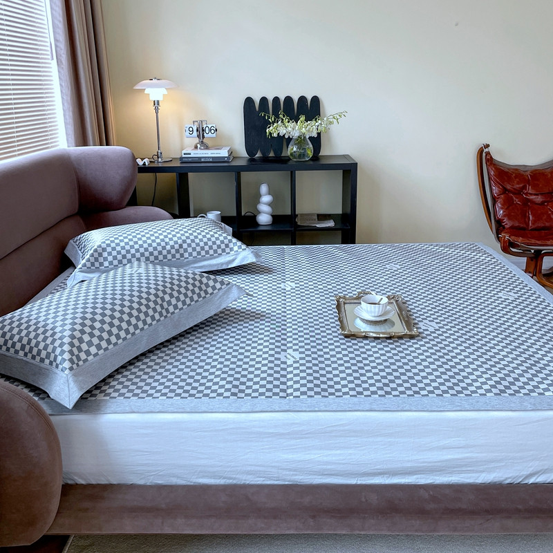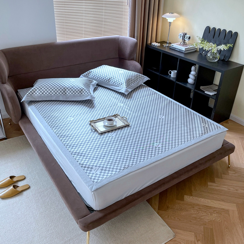 时年 2021新款水洗冰露丝养生凉席数码印花轻奢风格二棋盘格2