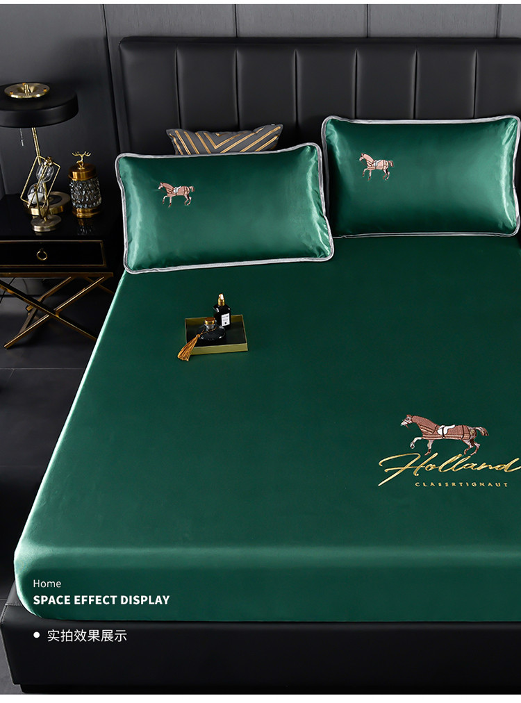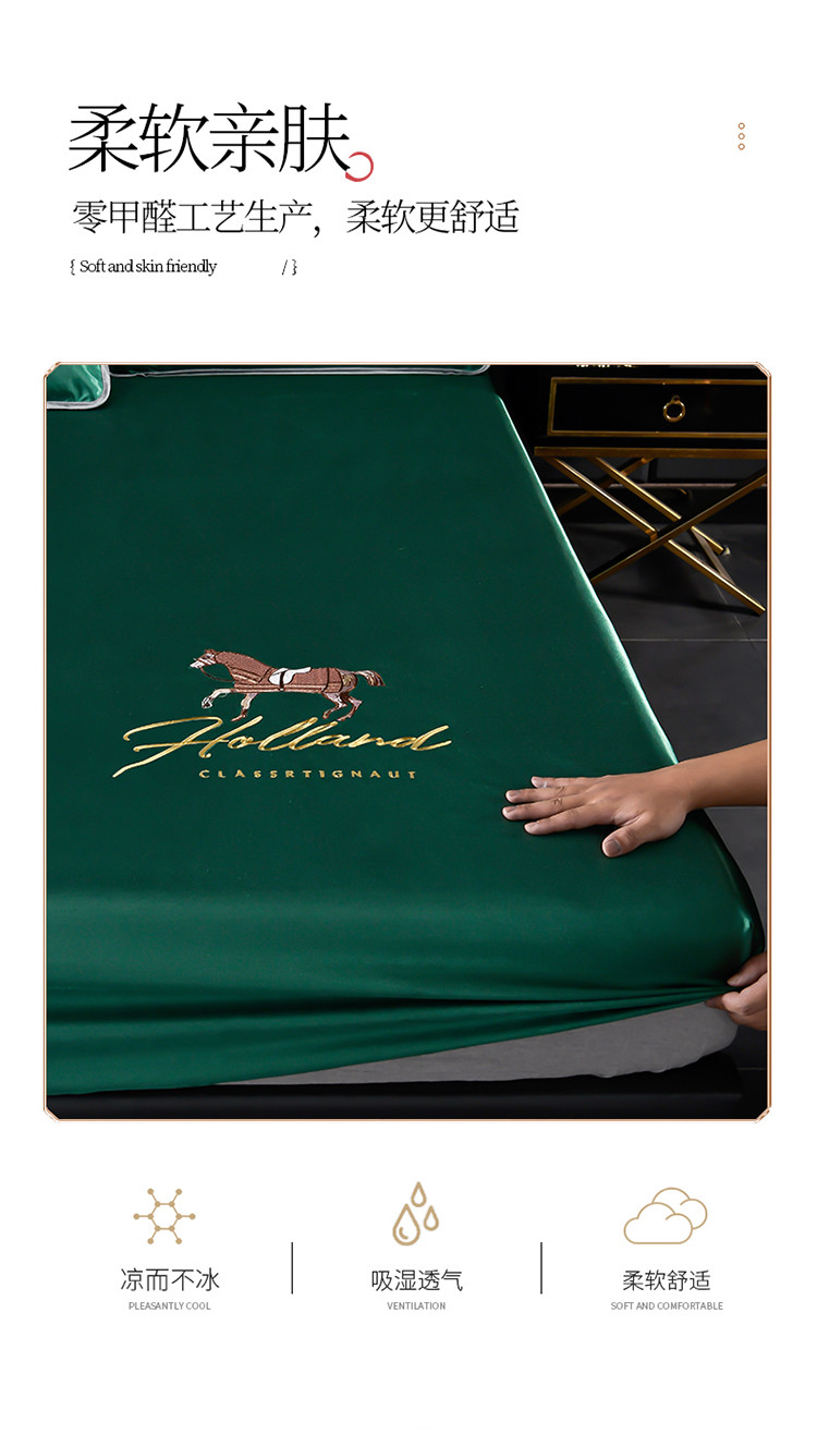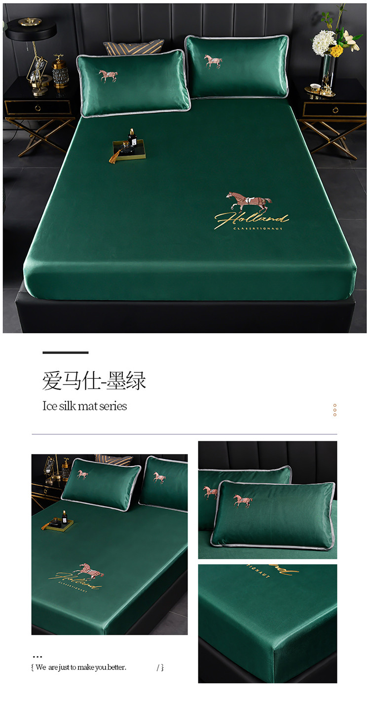 芃成家纺 2021新款冰丝凉席刺绣床笠款 爱马仕墨绿