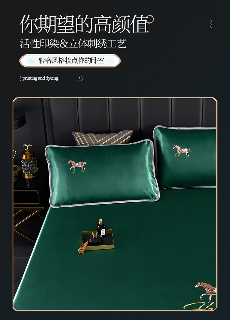 商品名称:芃成家纺 2021新款冰丝凉席刺绣床笠款 爱马仕墨绿