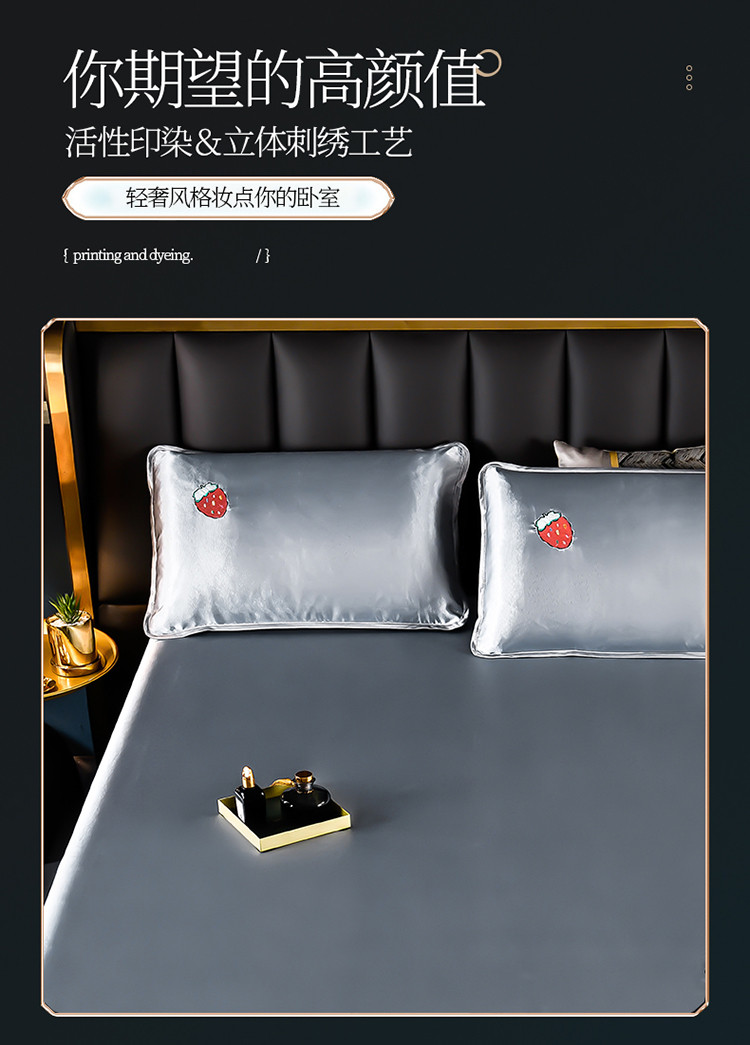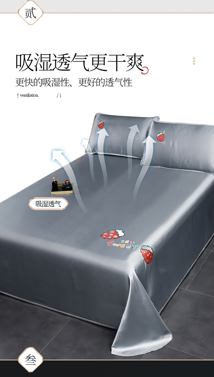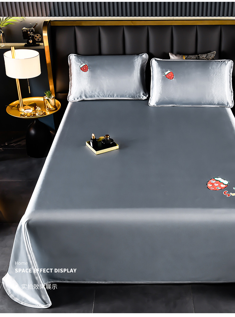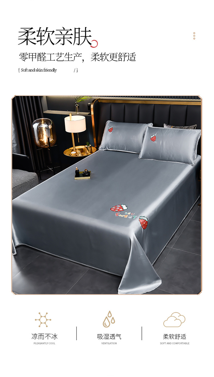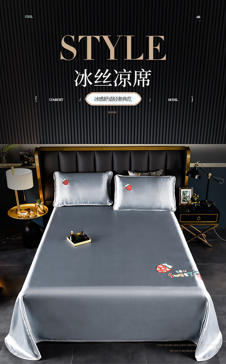 芃成家纺 2021新款冰丝凉席刺绣床单款 草莓浅灰