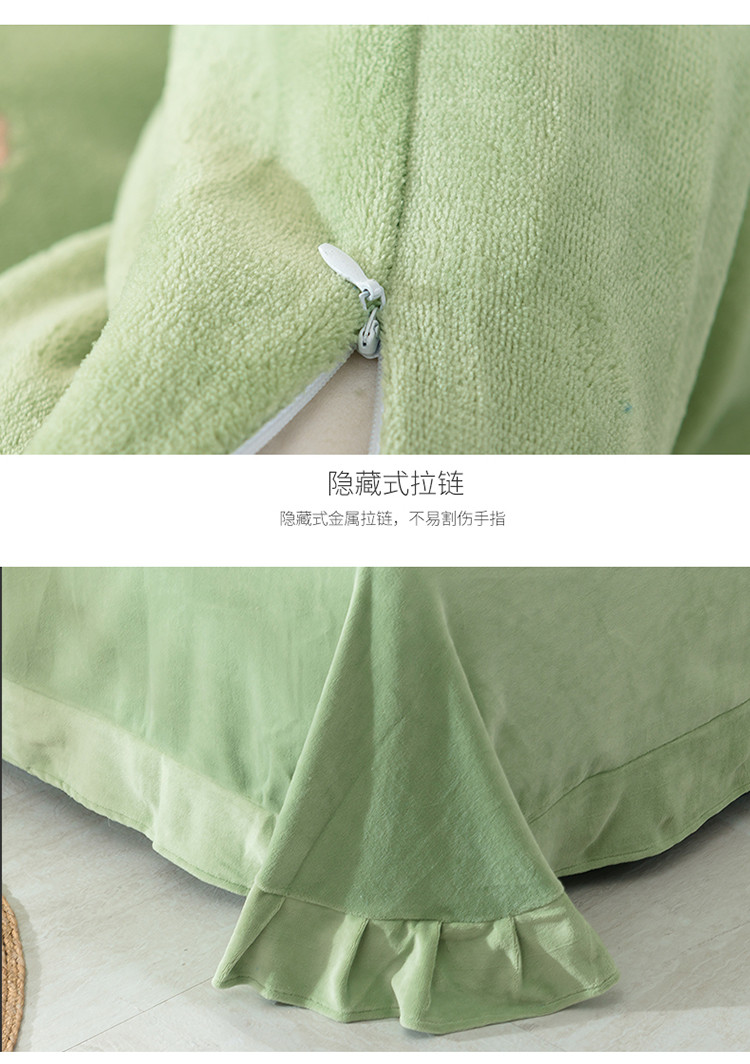 佳梦家纺轻奢提花绒四件套牛奶绒纯色消光压花宝宝绒被套 草绿,草绿