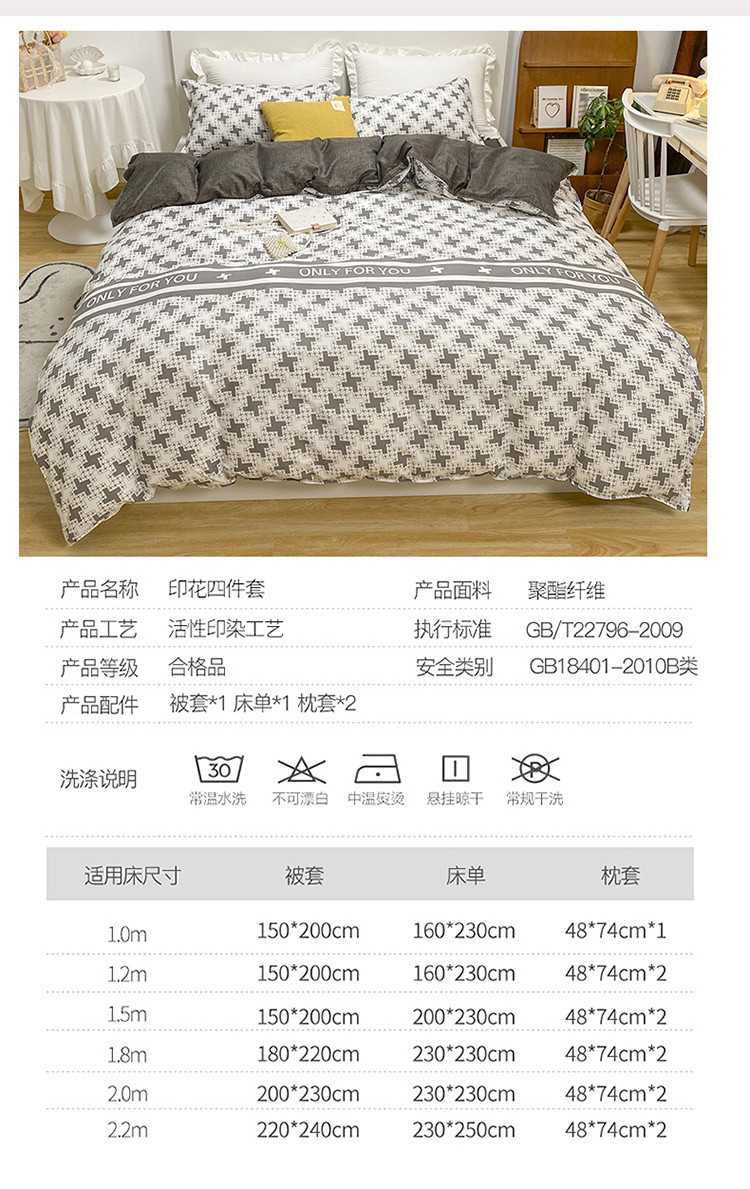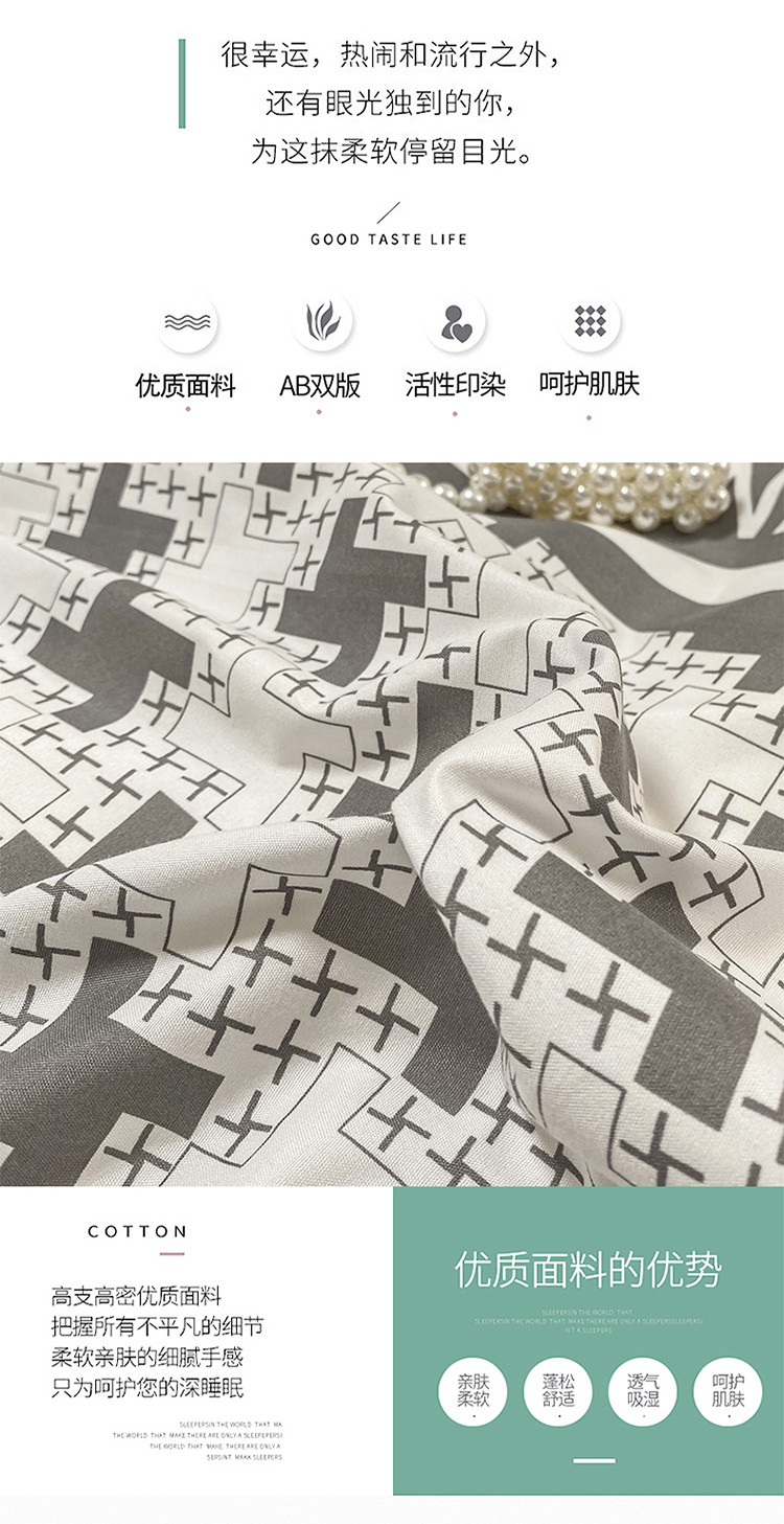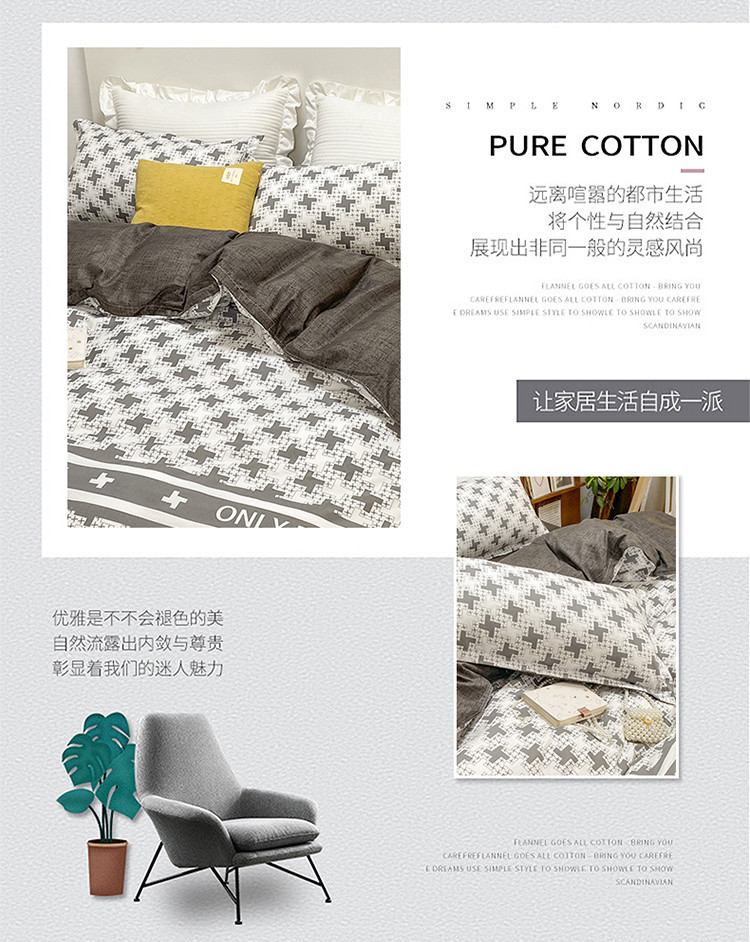 妖妖家纺 2021新款芦荟棉印花四件套 简生活