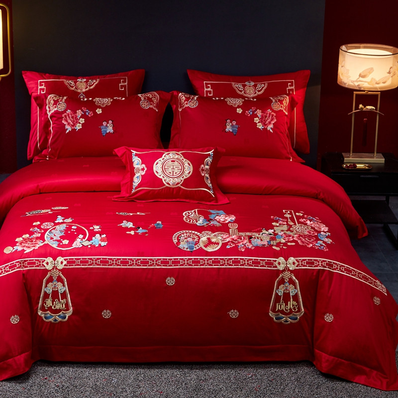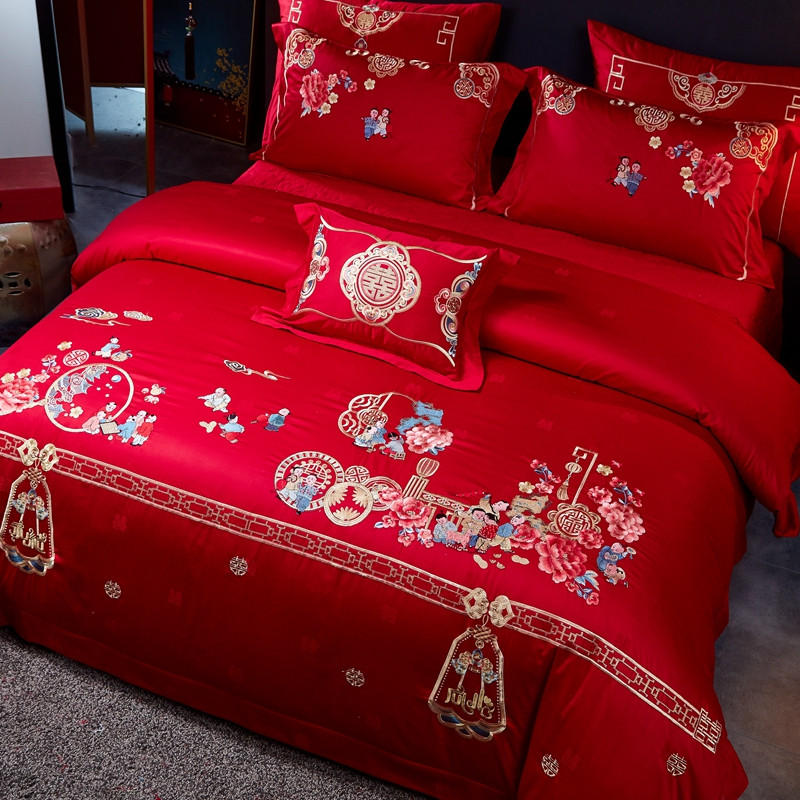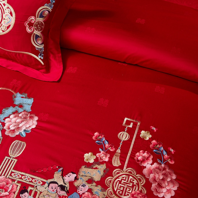 当前位置: 91家纺网 > 商品网购 > 床品套件 > 多件套 > 多件套 > (总) 高大尚 2021新款提花婚庆多件套-代代相传