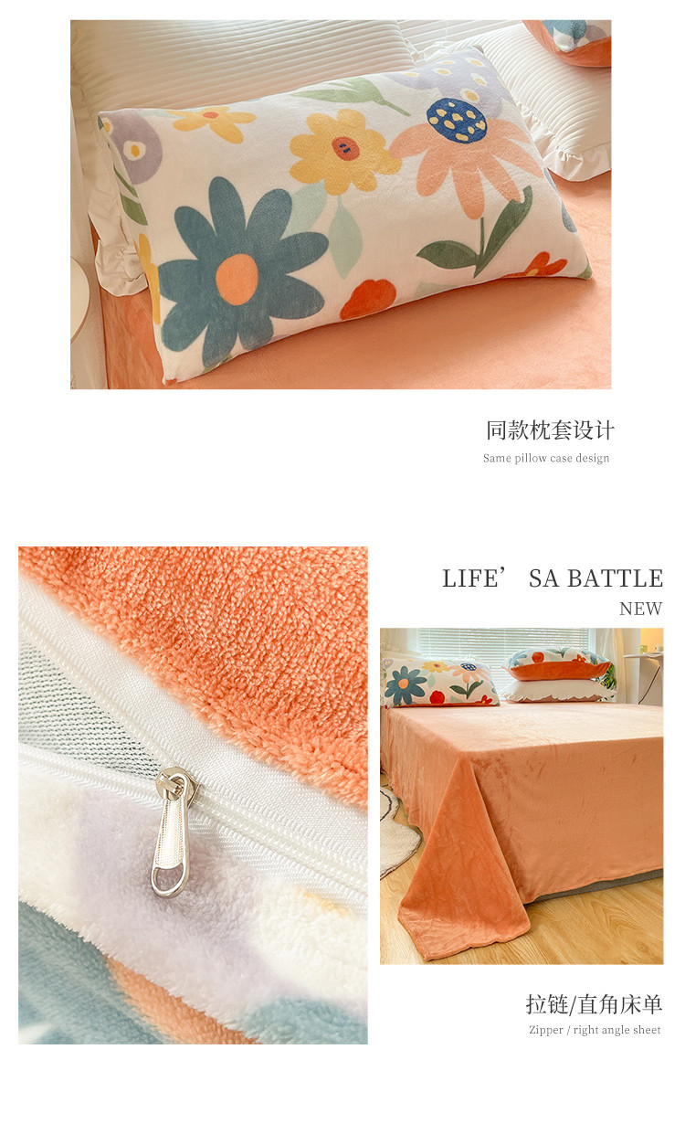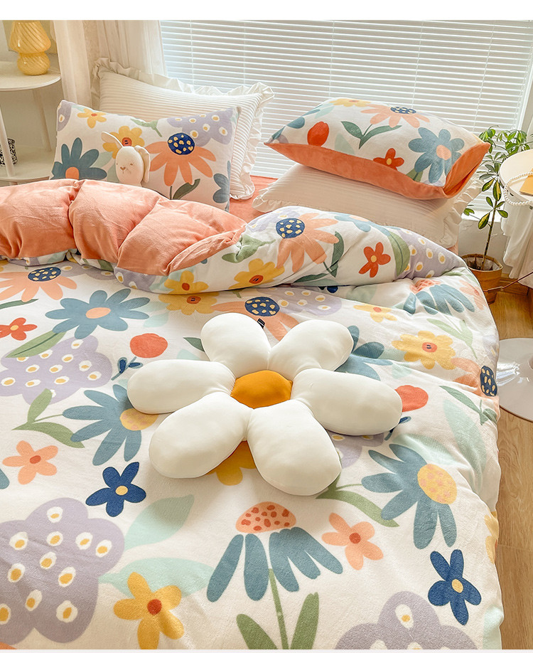 商品名称:金爱家 2021新款牛奶绒暖边四件套 花海