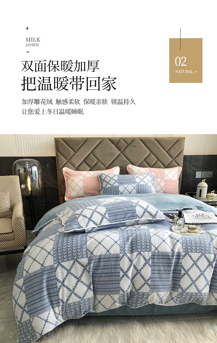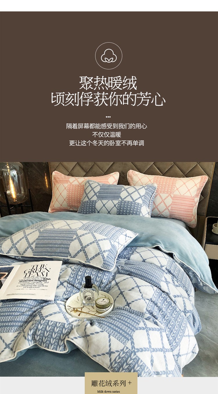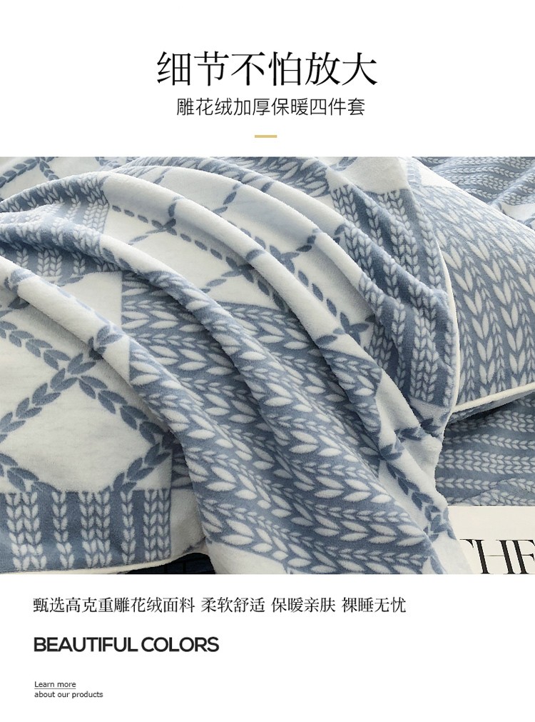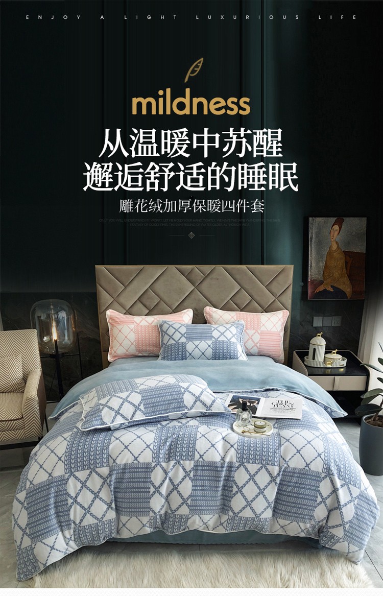 当前位置: 91家纺网 > 商品网购 > 床品套件 > 四件套 > 牛奶绒四件套 > 慕尚 2022新款雕花绒立体牛奶绒轻奢系列四件套 华夫蓝