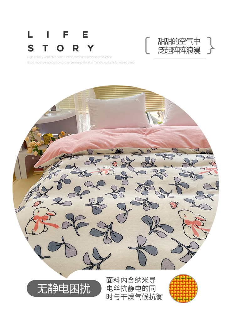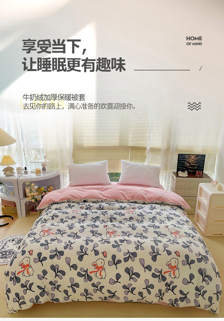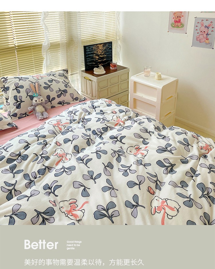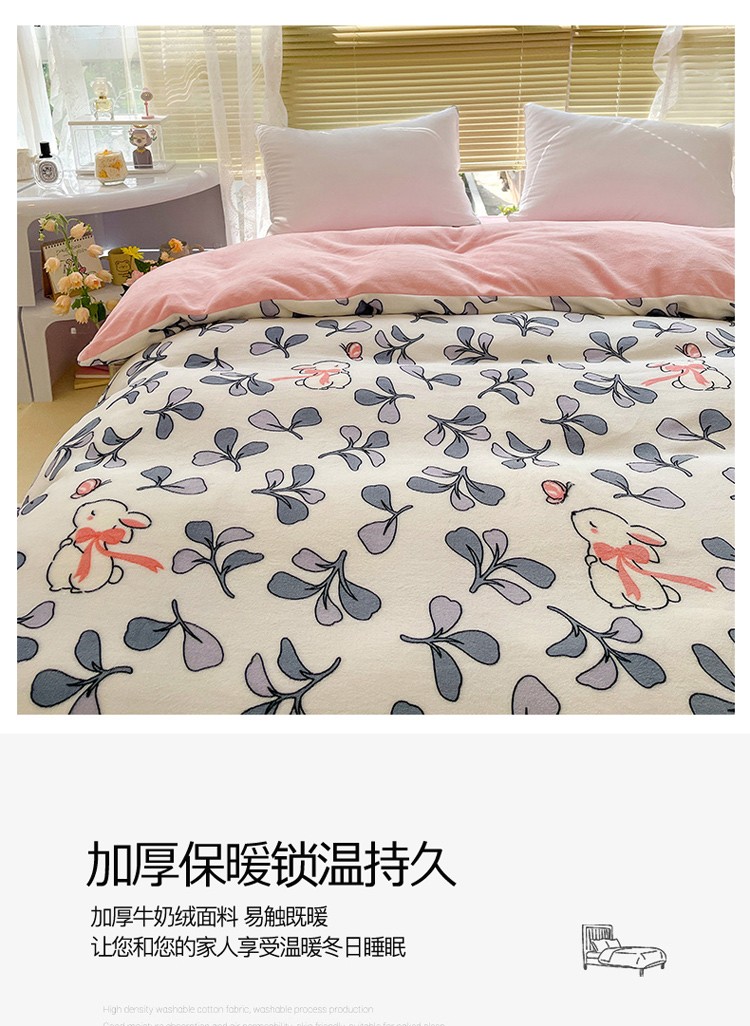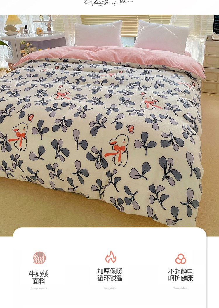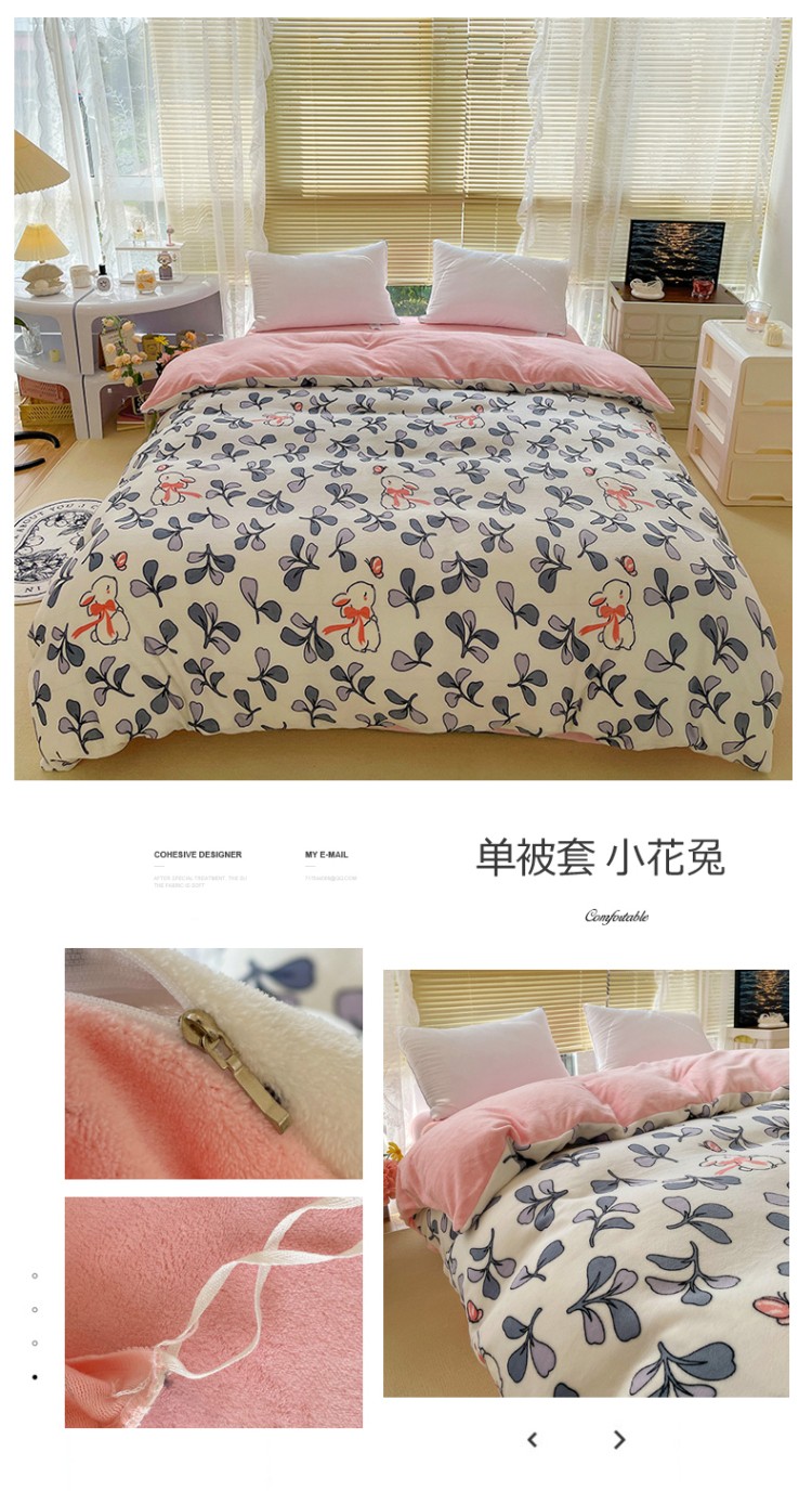 商品名称:慕尚 2022新款田园花卉类牛奶绒单被套 小花兔