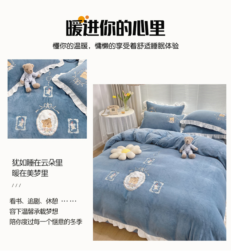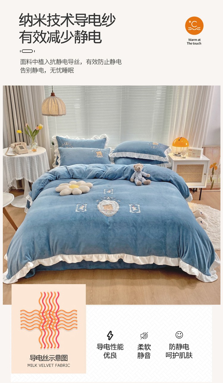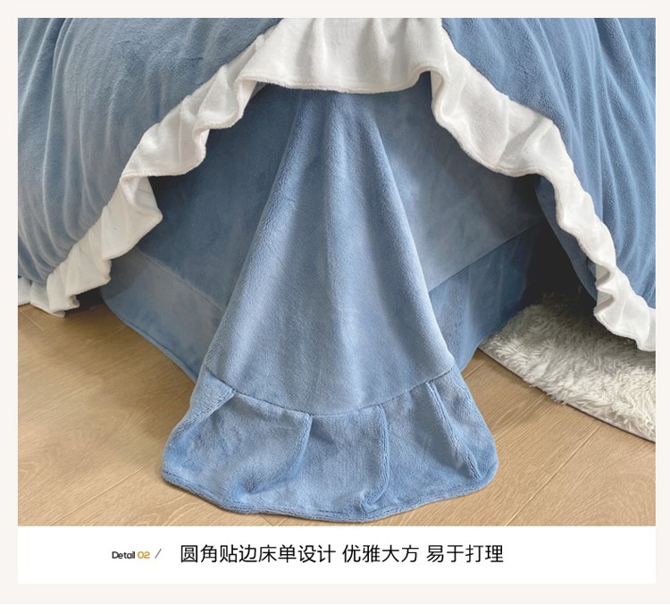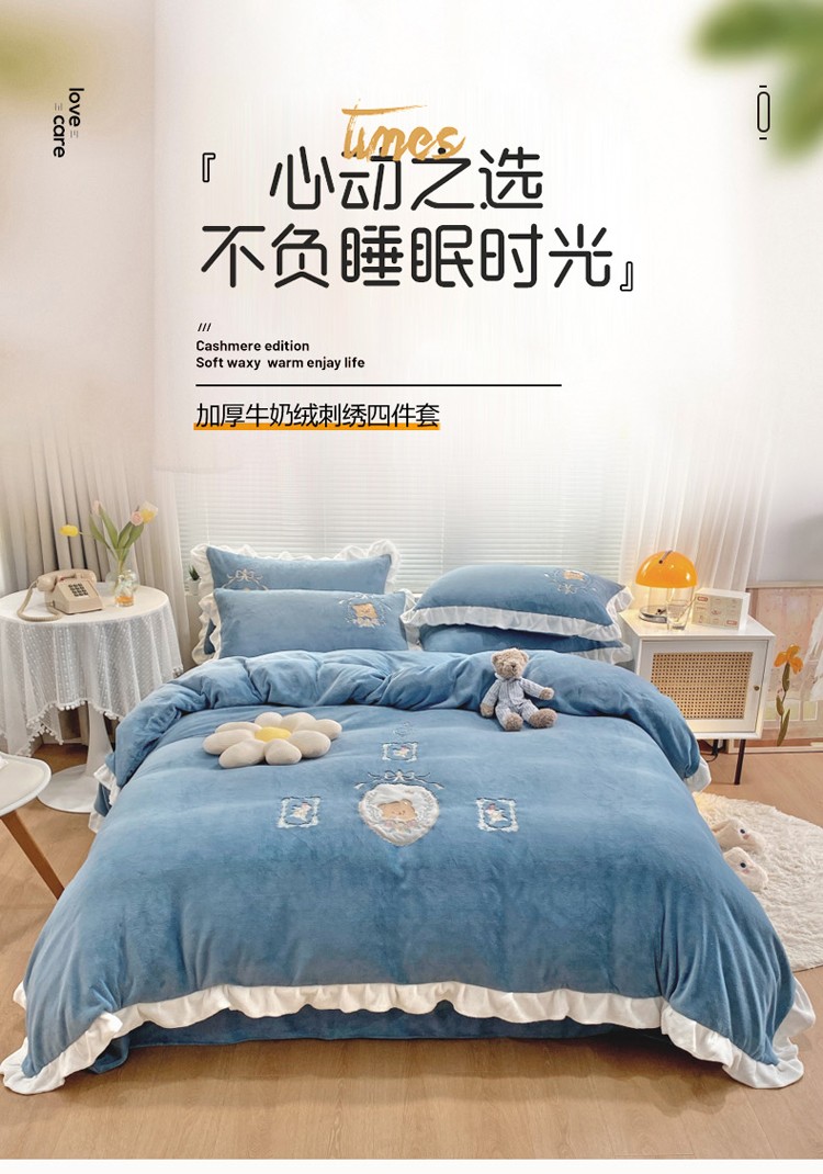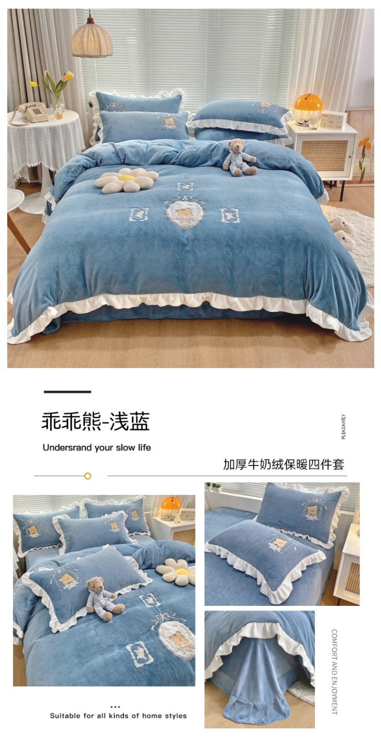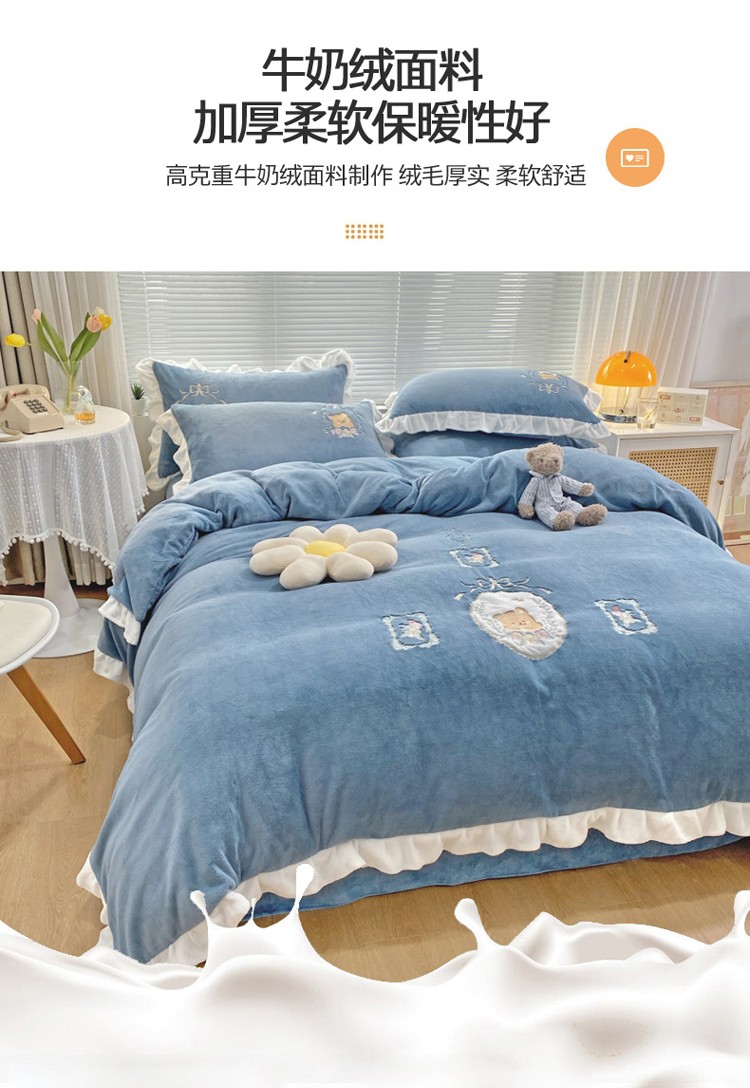 (总)星尚家纺 2024新款加厚保暖全消光牛奶绒夹棉床裙四件套-玫瑰之恋,粉玉,寐紫,浅蓝,水绿