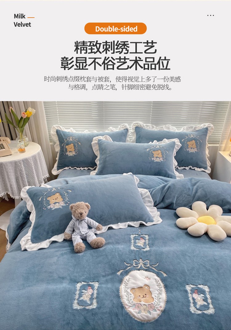 (总)星尚家纺 2024新款全消光A类230g牛奶绒韩版绣花绒四件套-绚丽花语,豆沙粉,浪漫紫,雾霾蓝,樱花粉,晨雾绿