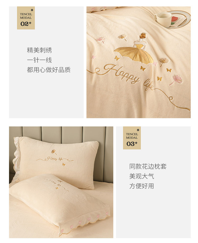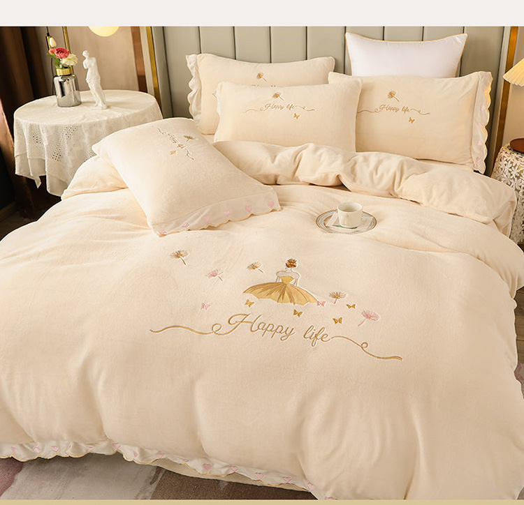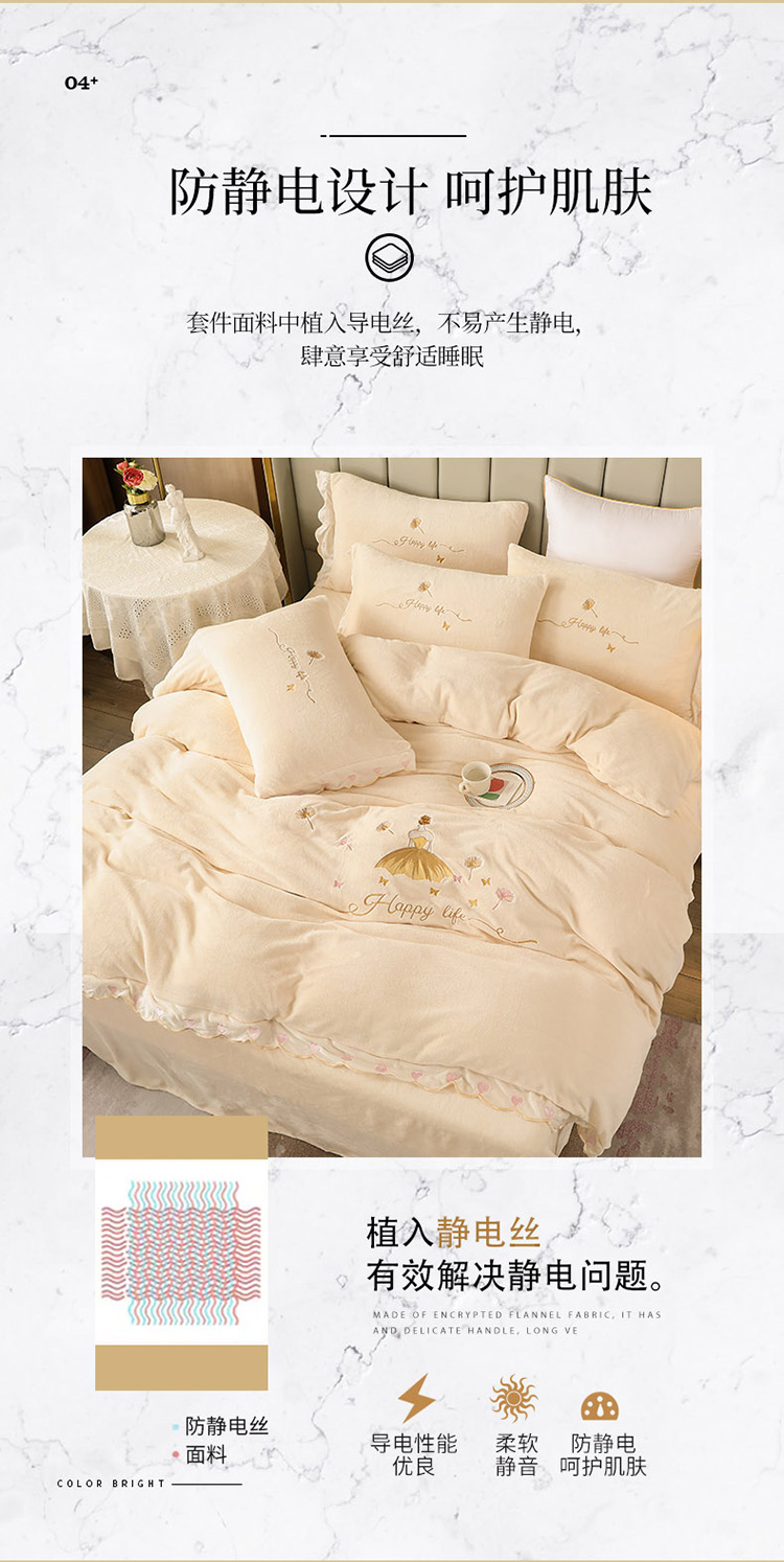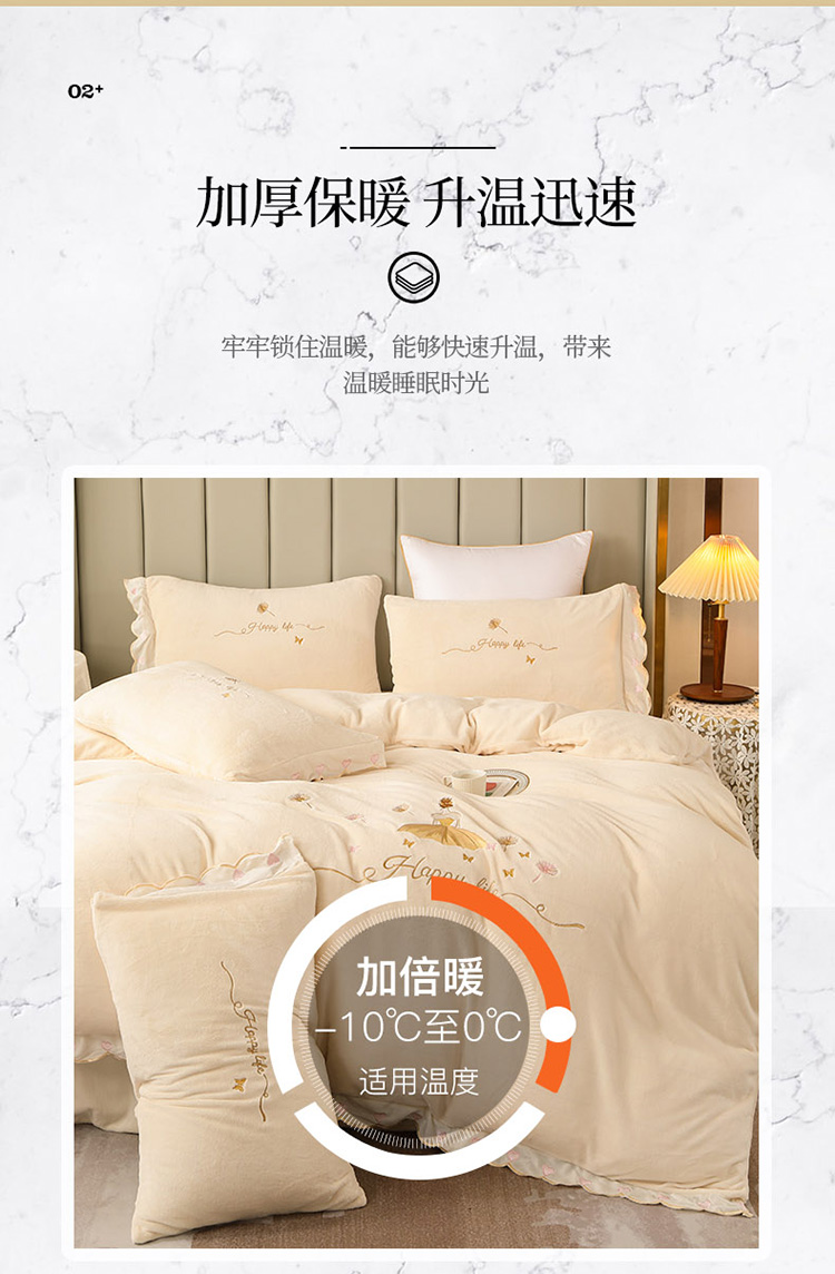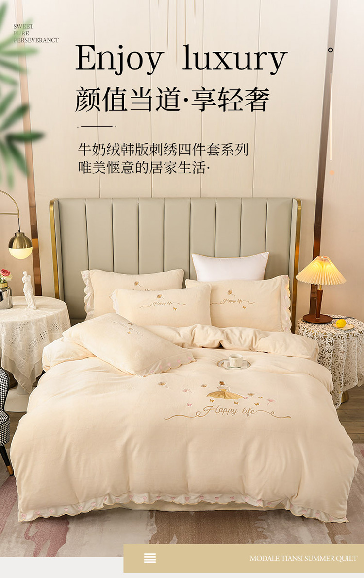 沐辰 2021新款牛奶绒刺绣四件套-舒蕾公主 舒蕾公主-米白
