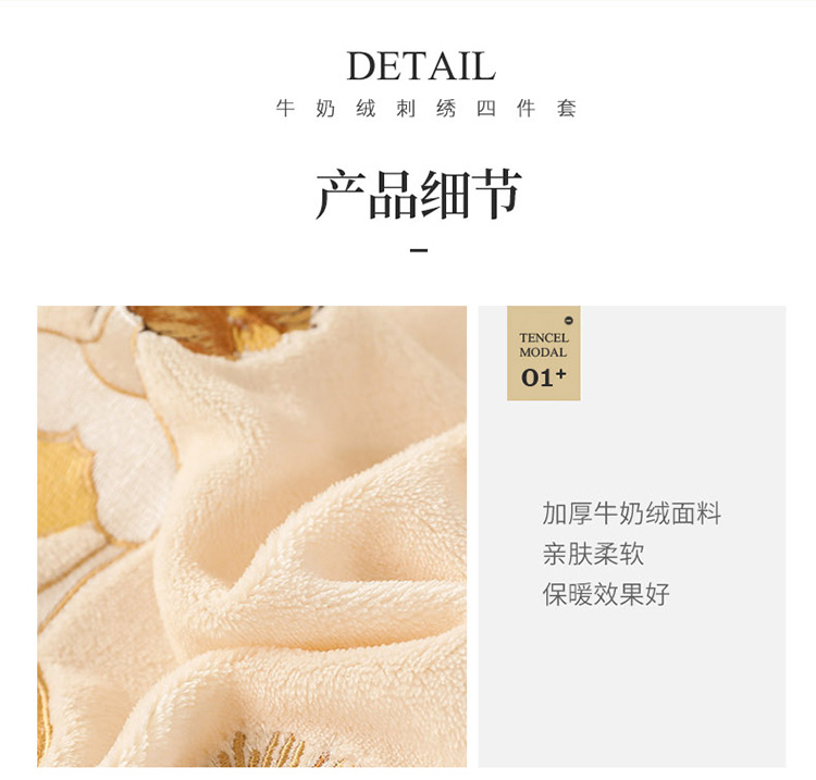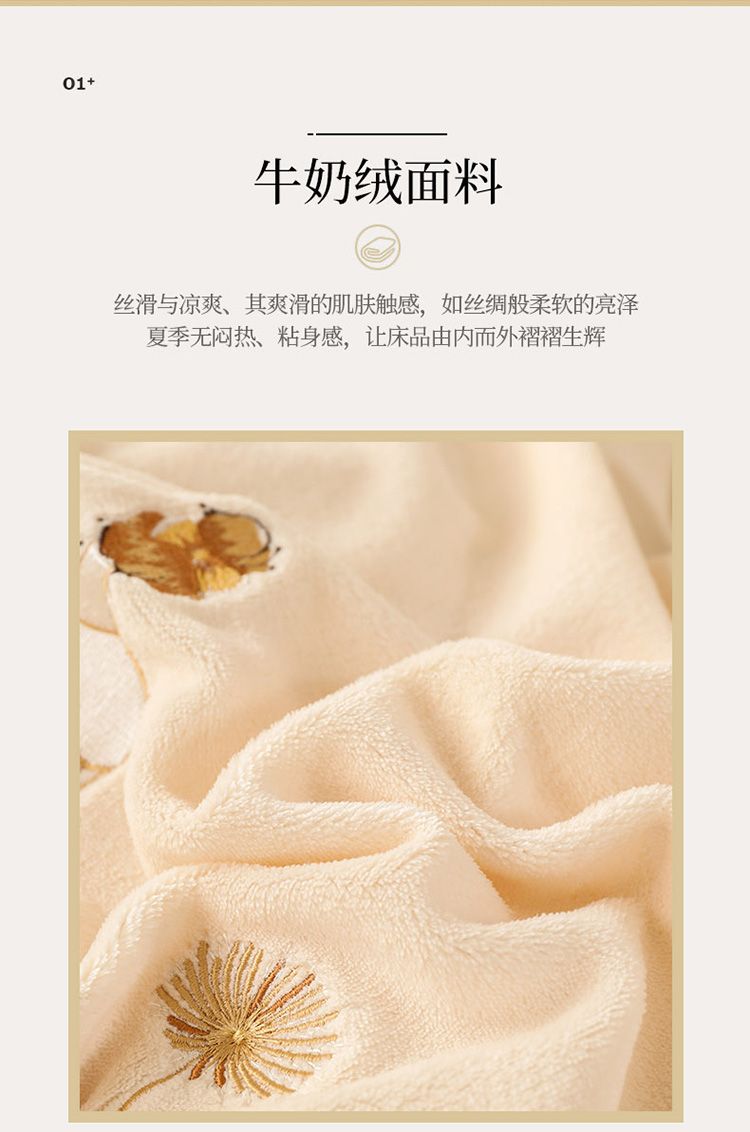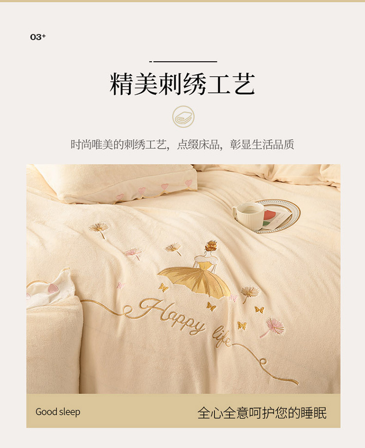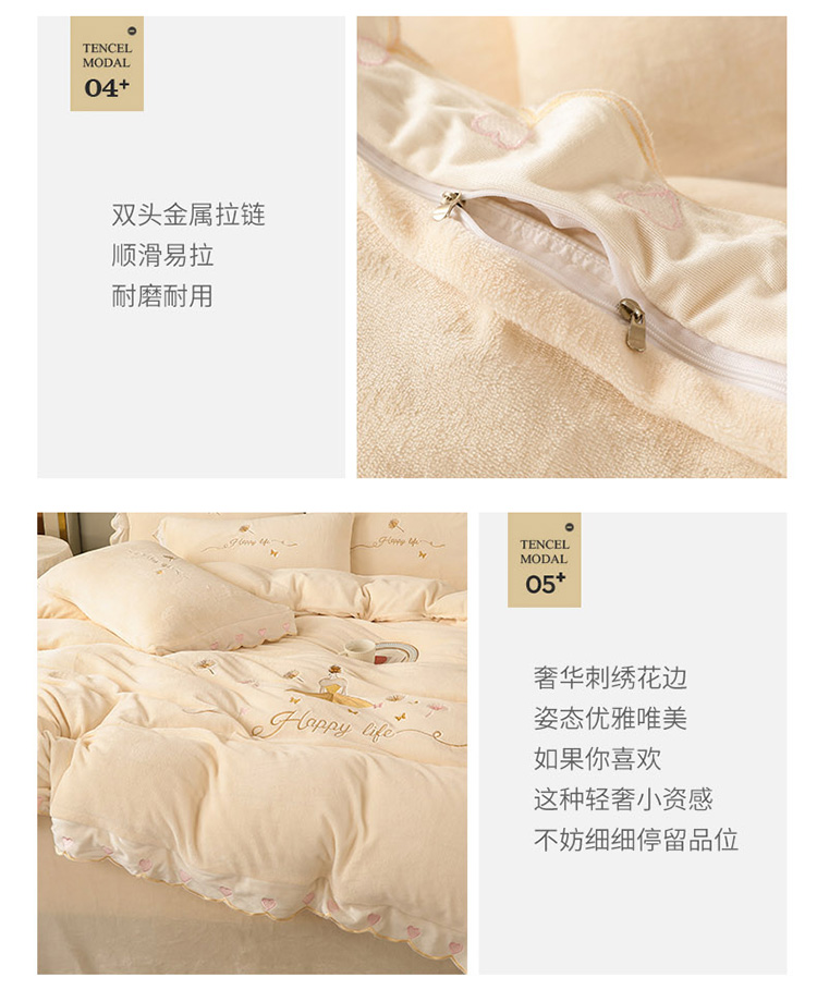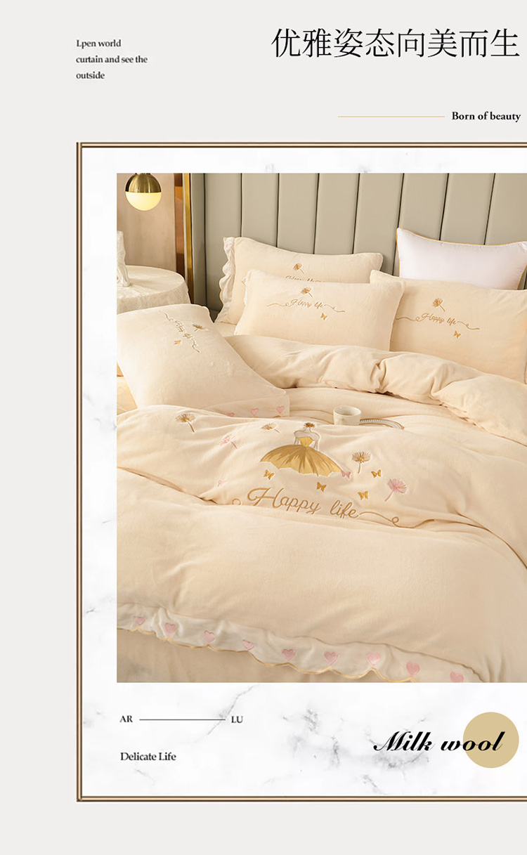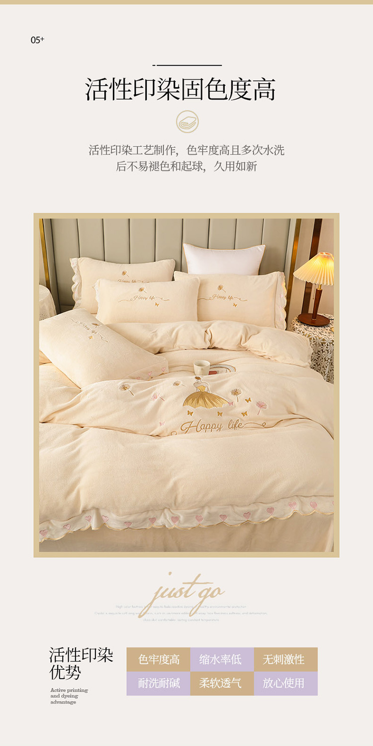 沐辰 2021新款牛奶绒刺绣四件套-舒蕾公主 舒蕾公主-米白