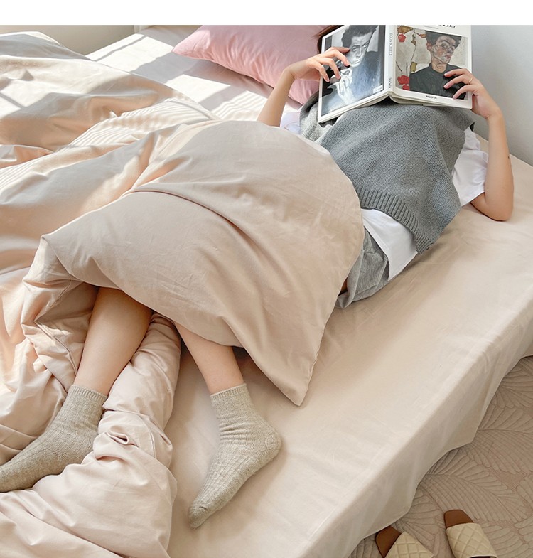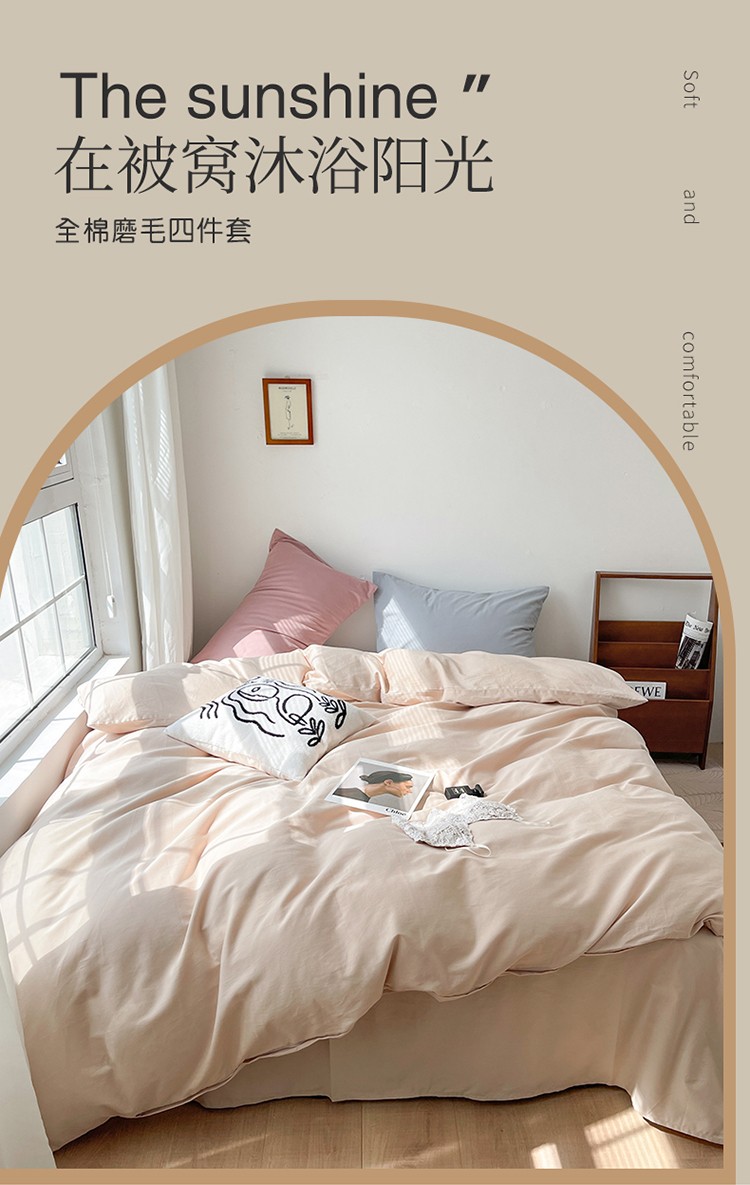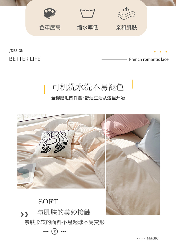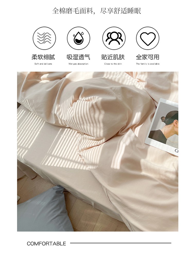 商品名称:时年家纺2021新款全棉磨毛纯色混搭四件套 奶酪蜜糖