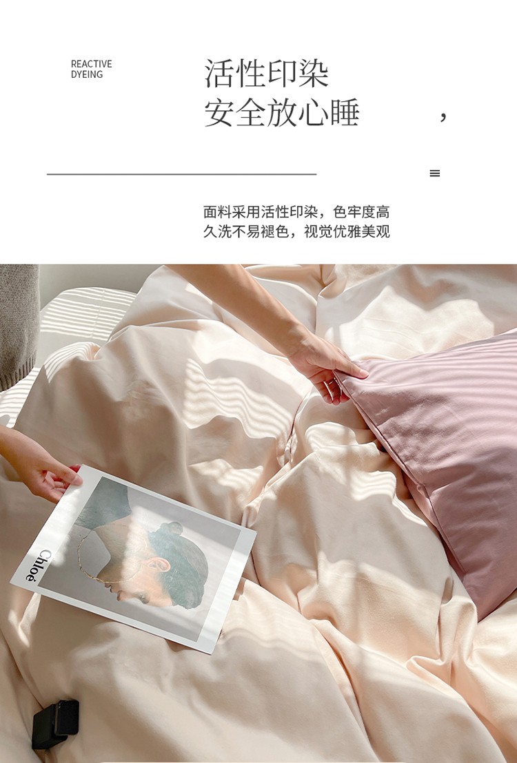 时年 2022新款全棉40支13372ins条纹款四件套 复古奶绿,复古奶绿