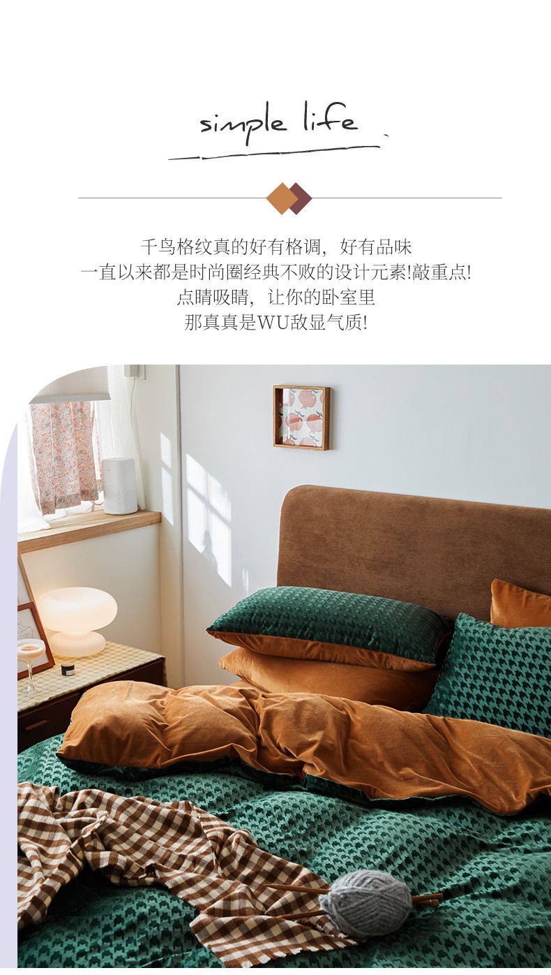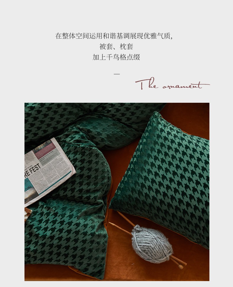 (总)梦享生活家居 2021新款天鹅绒轻奢千鸟格四件套