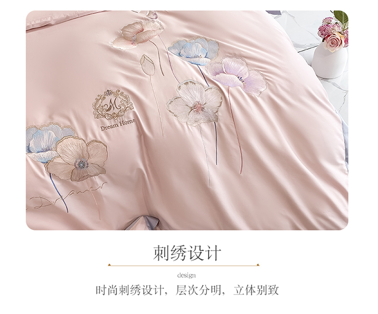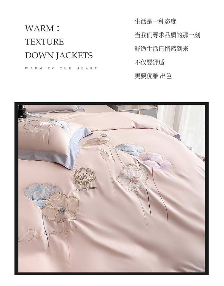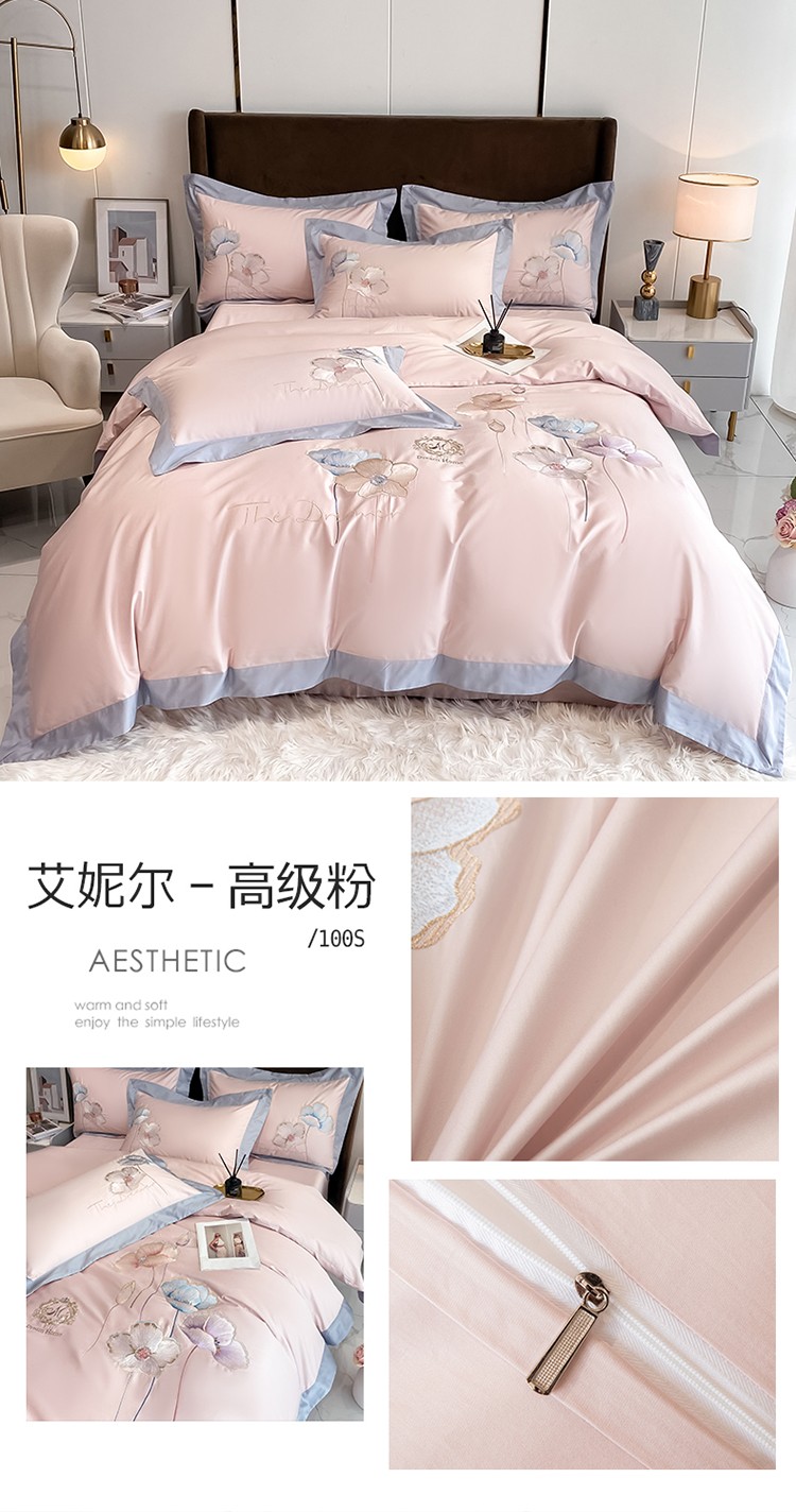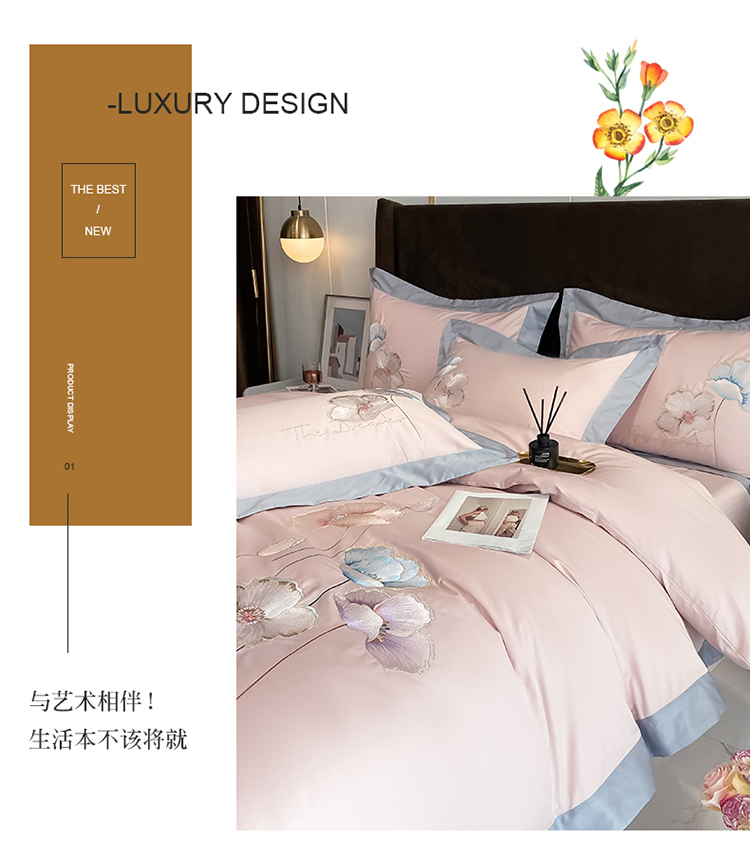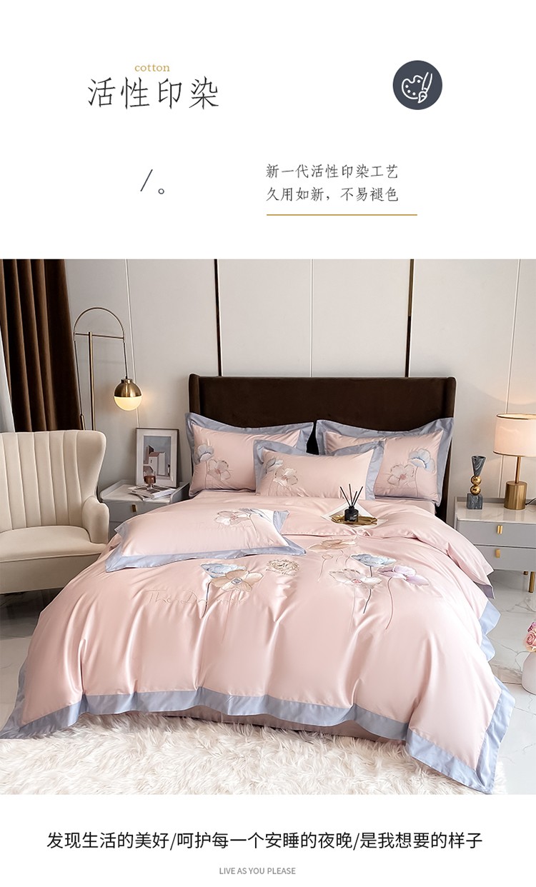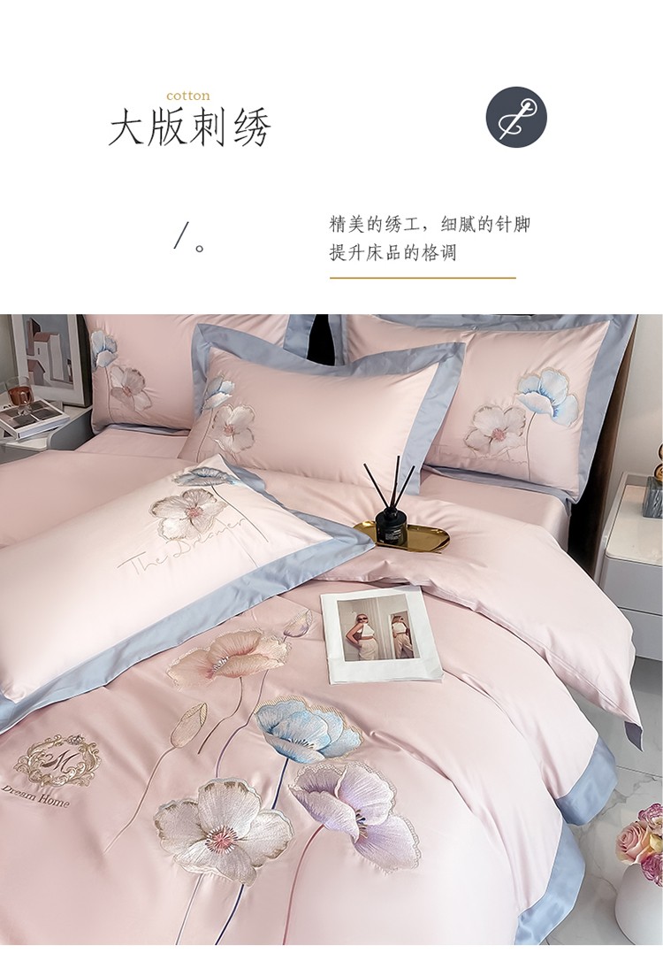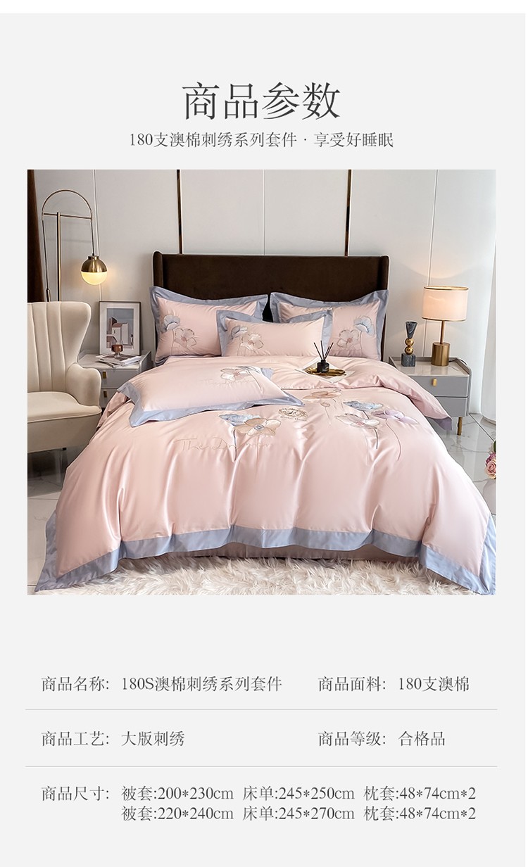 (总)品家居2021新款贝拉花园180支全棉澳棉刺绣四件套,贝拉花园-粉,贝拉花园-蓝