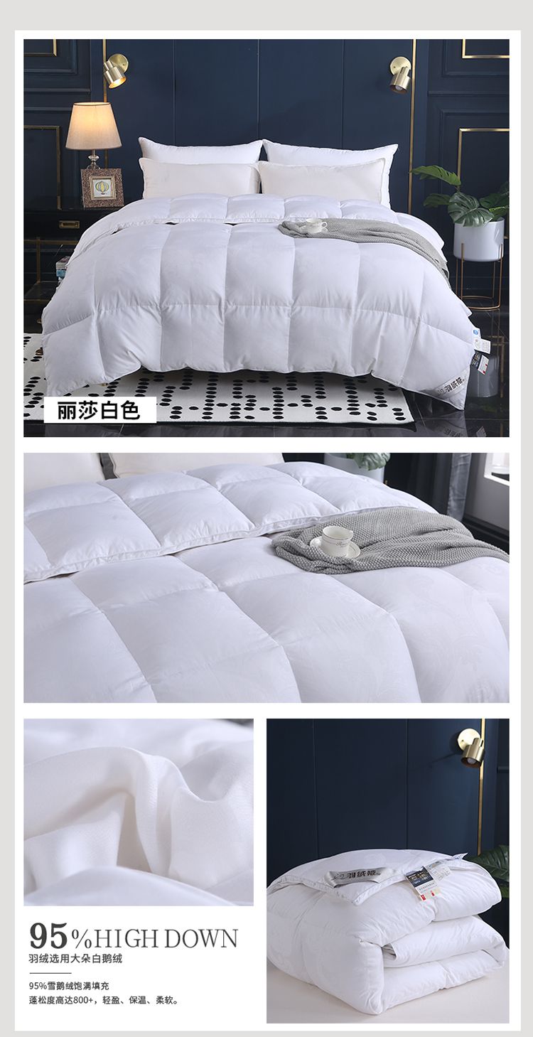 商品名称:锦瑞羽绒 2024新款丽莎鹅绒被80支全棉贡缎提花 白色
