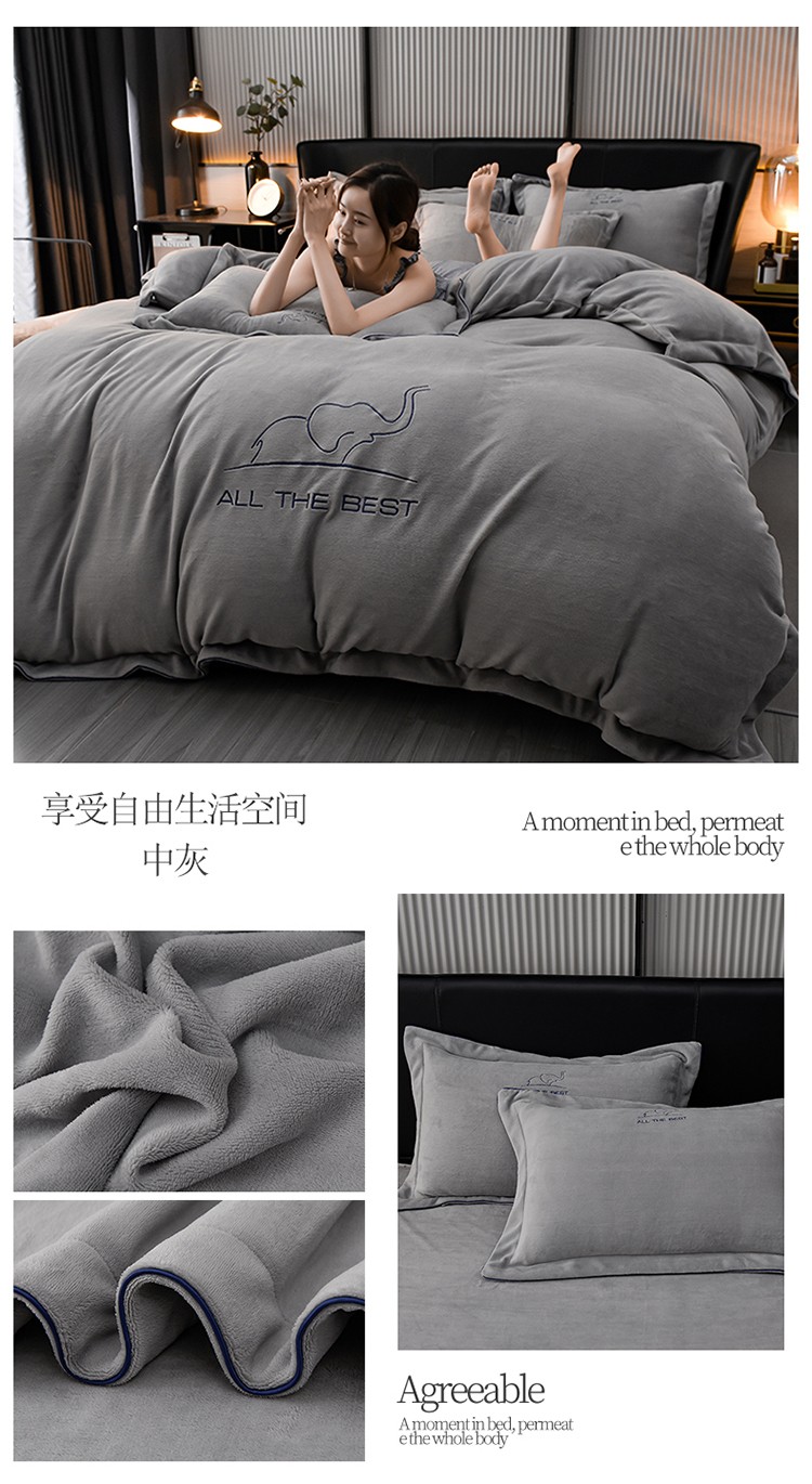 米奈家居 2024新款A类婴儿绒四件套有质检报告小象 中灰