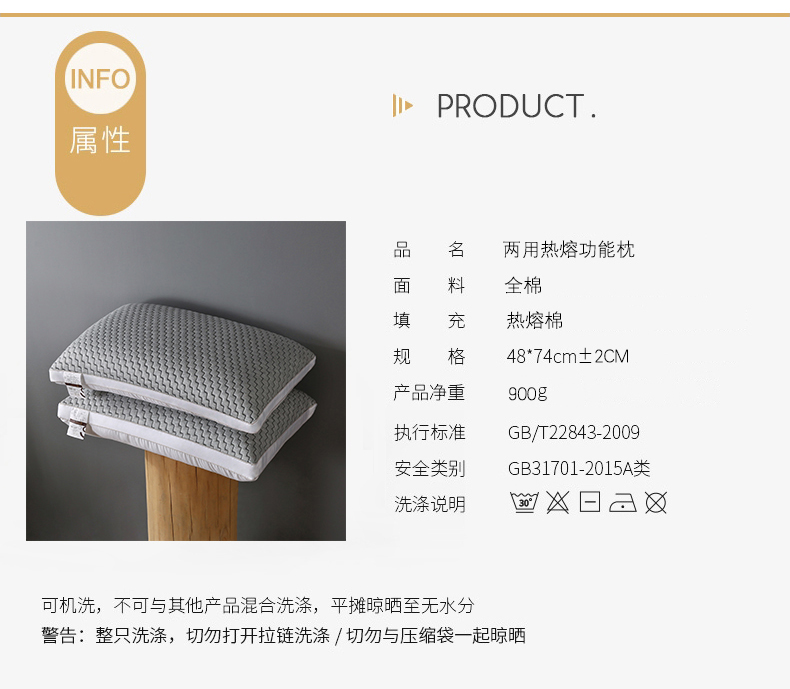 商品名称:两面用超柔全棉针织热熔棉可水洗枕芯护颈整张棉安睡成人助眠枕头